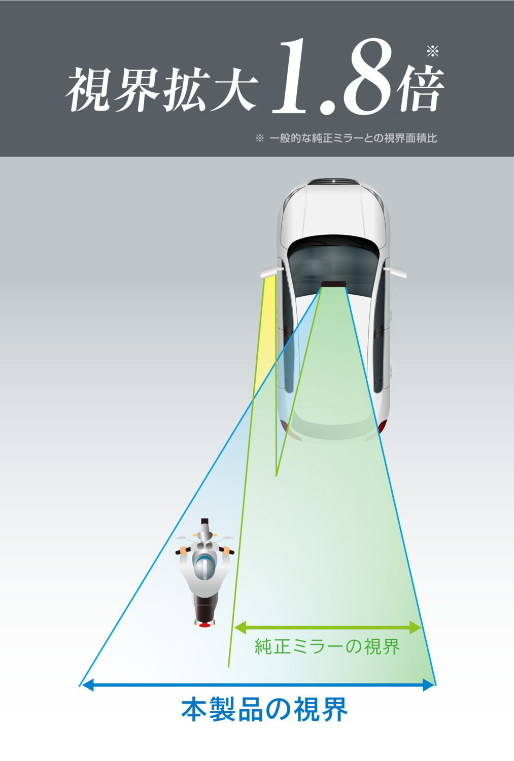 視界面積が約1.8倍に広がります