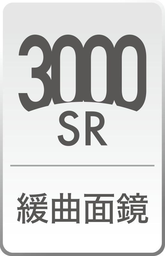 ・緩曲面鏡(3000SR): バランスタイプ 適度にワイドな視界になり、曲面鏡ほど距離感の変化が大きくないバランスの取れた鏡。 道路に設置されているカーブミラーなどにも採用されている。