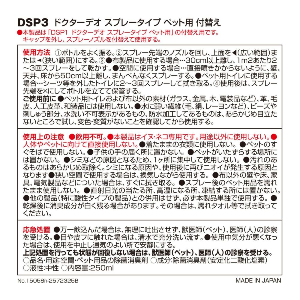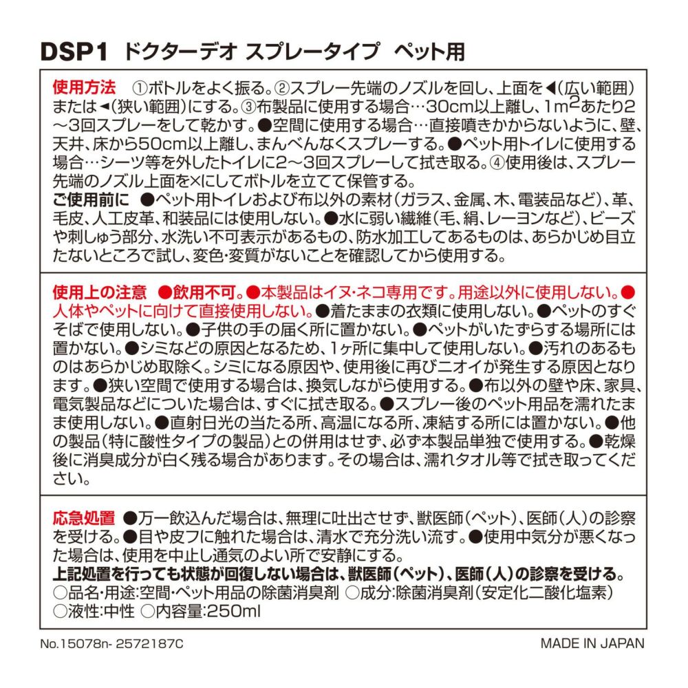 他の画像を見る 空間や気になる所にスプレーするだけ DSD1 ドクターデオ スプレータイプ 無香 ルート限定品 販売価格 ¥ 836 税込 空間や気になる所にスプレーするだけ 詳細を見る お気に入りに登録する