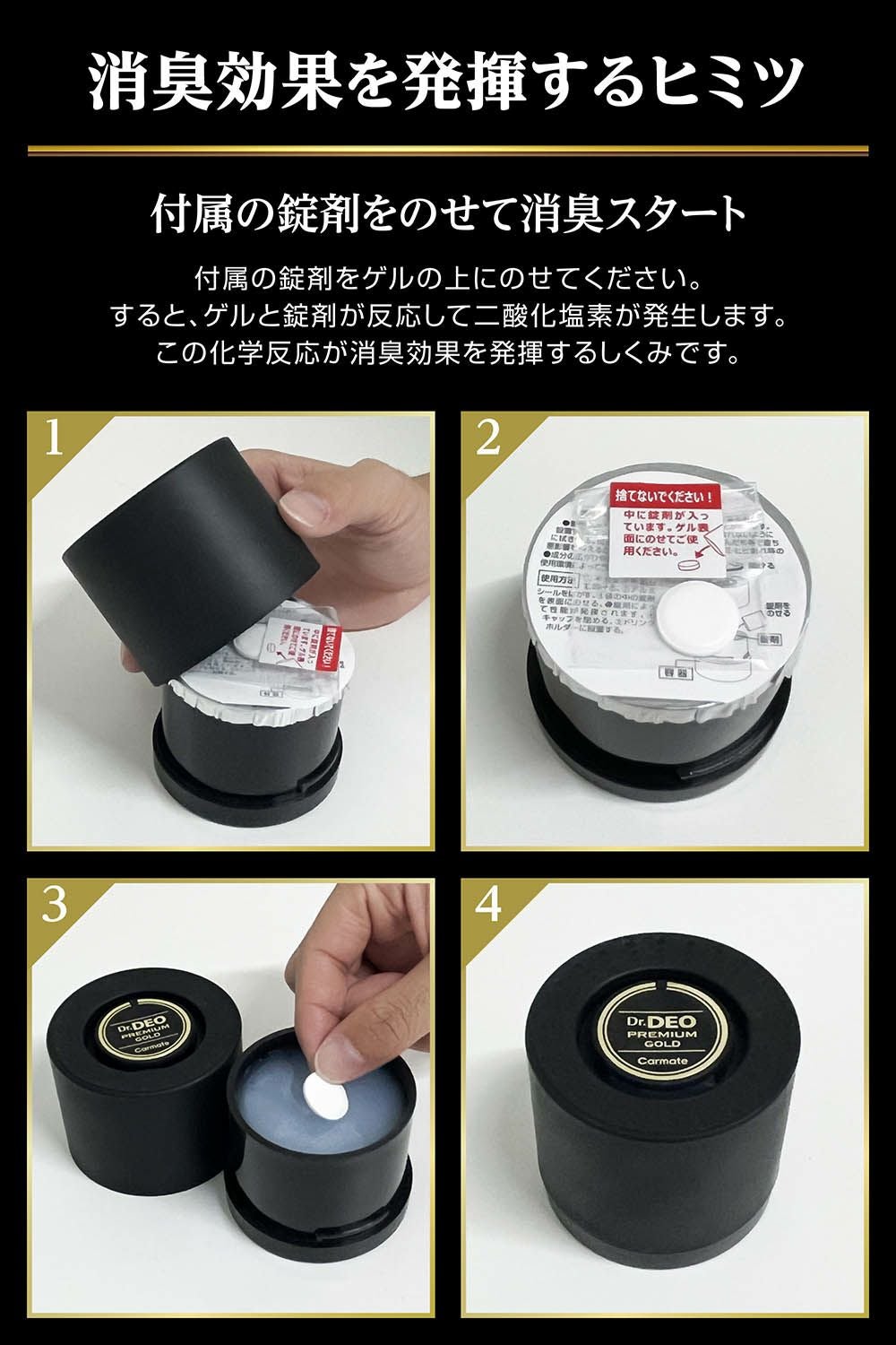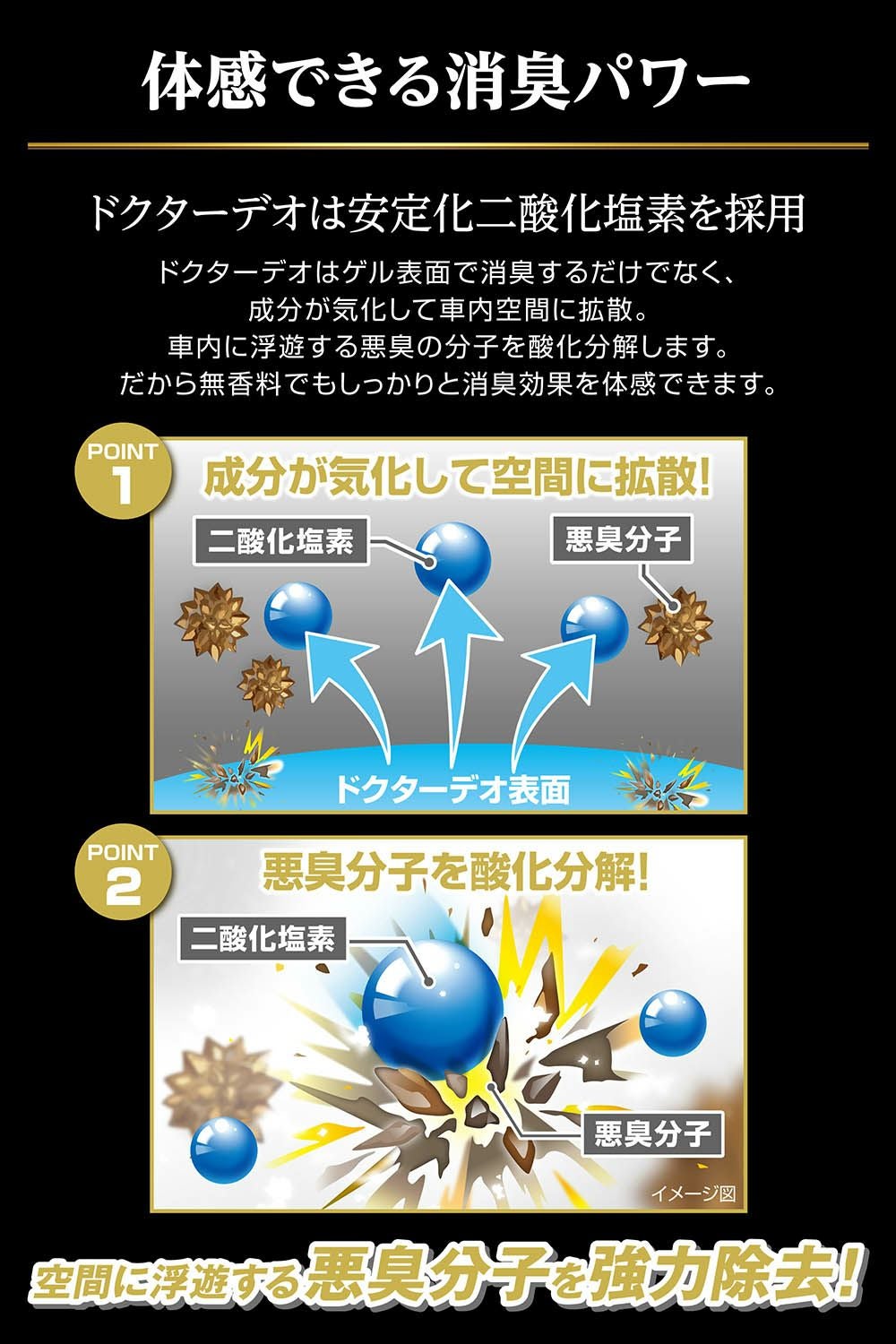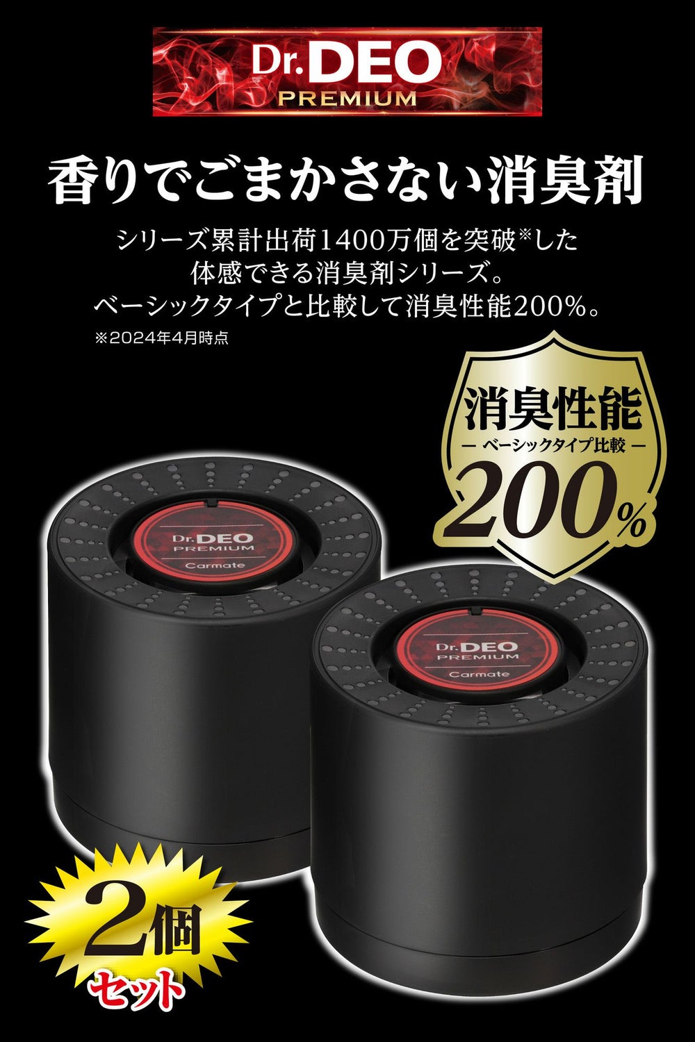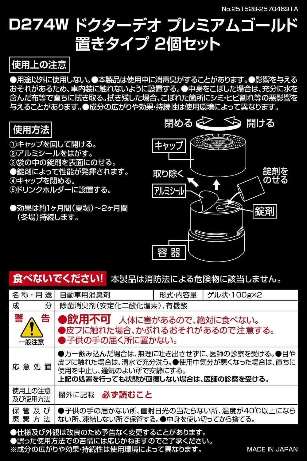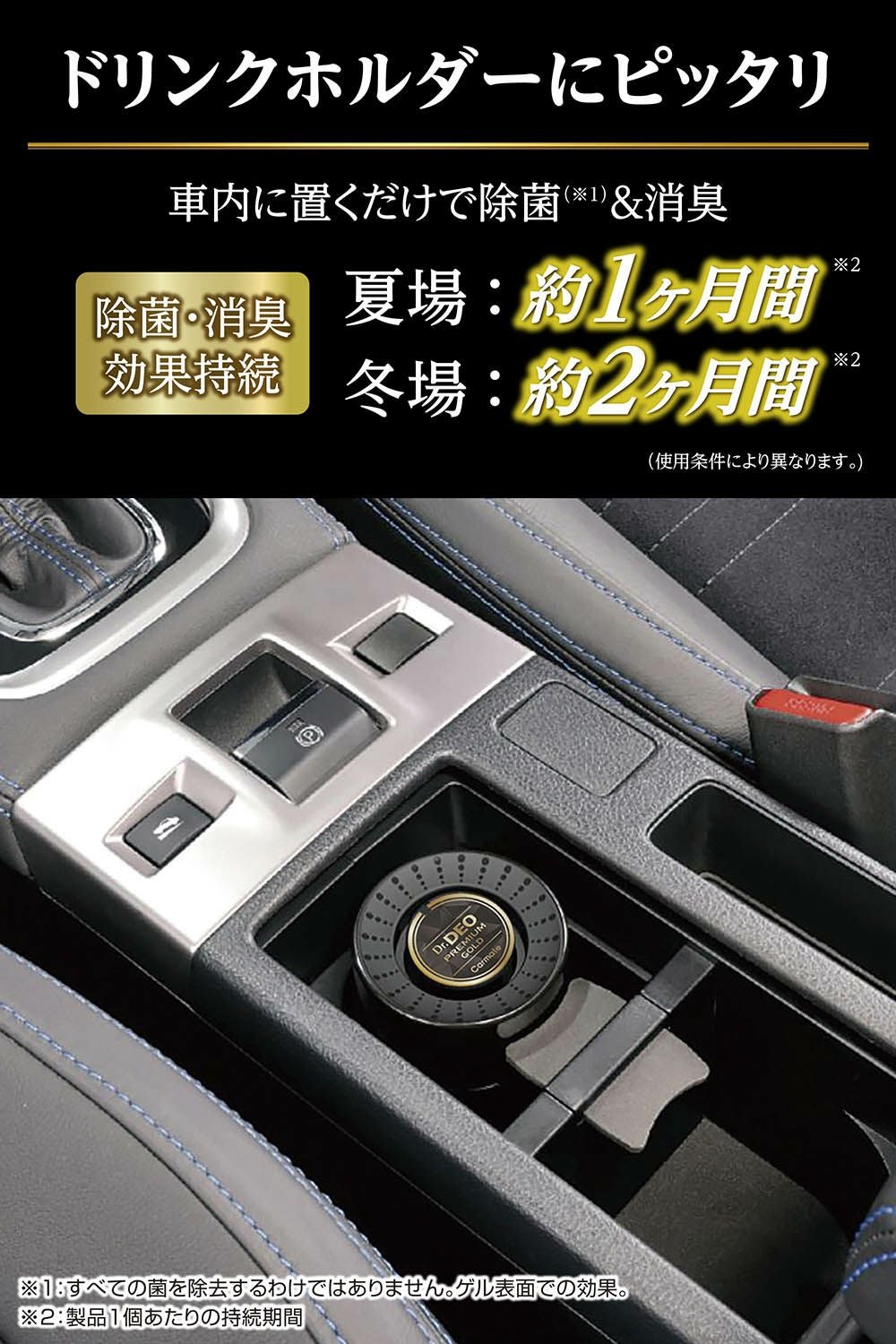 ドリンクホルダーにピッタリサイズ。車内に置くだけで悪臭成分を酸化分解し強力消臭。 ドクターデオ プレミアムゴールド 置きタイプ(D274)のお買い得2個セット。
