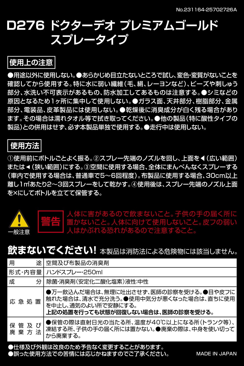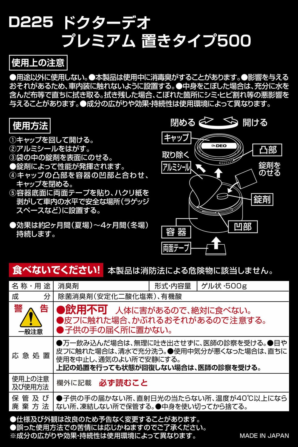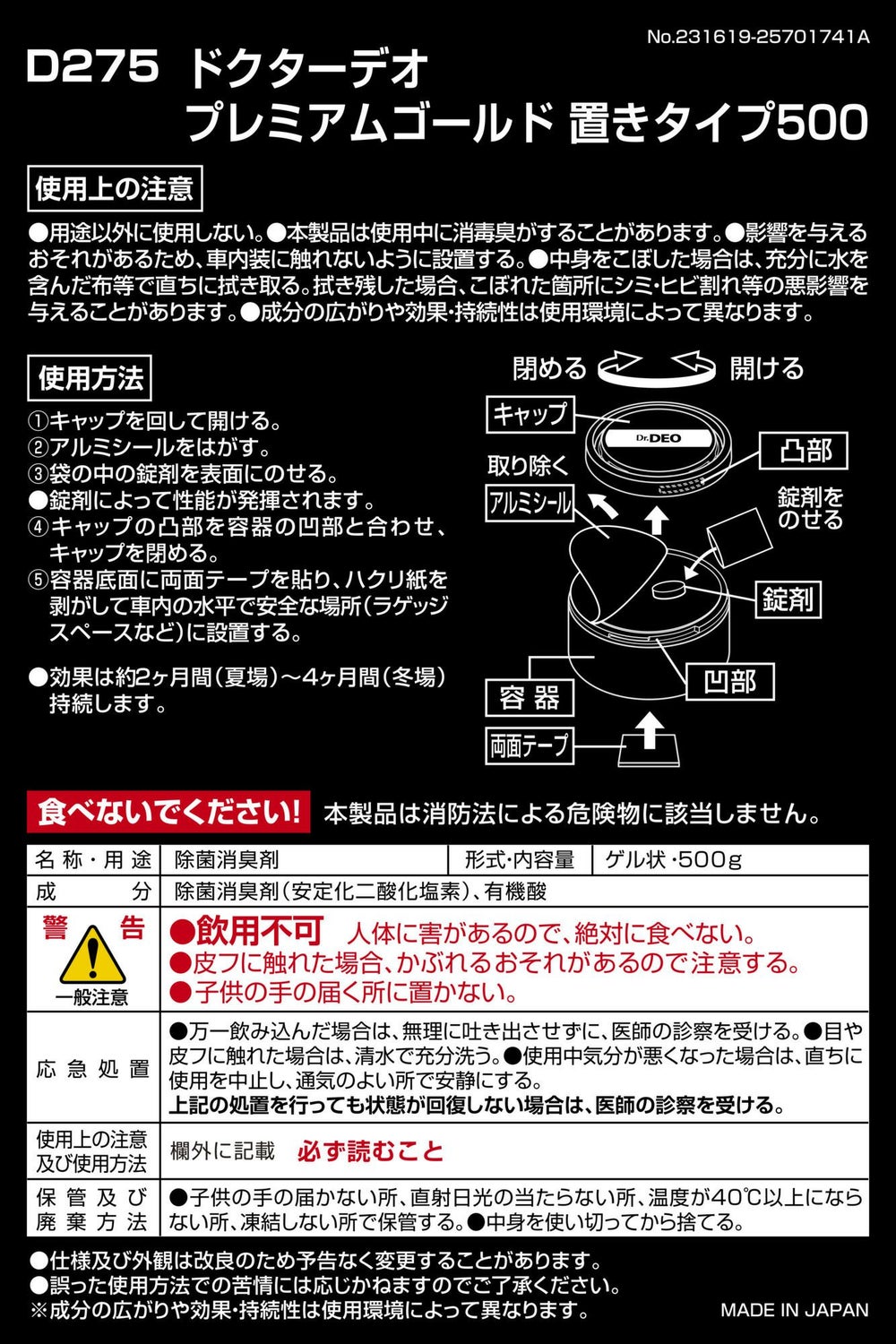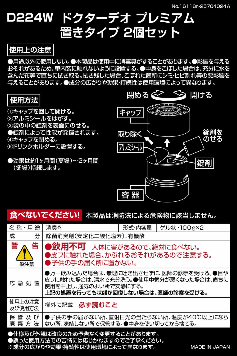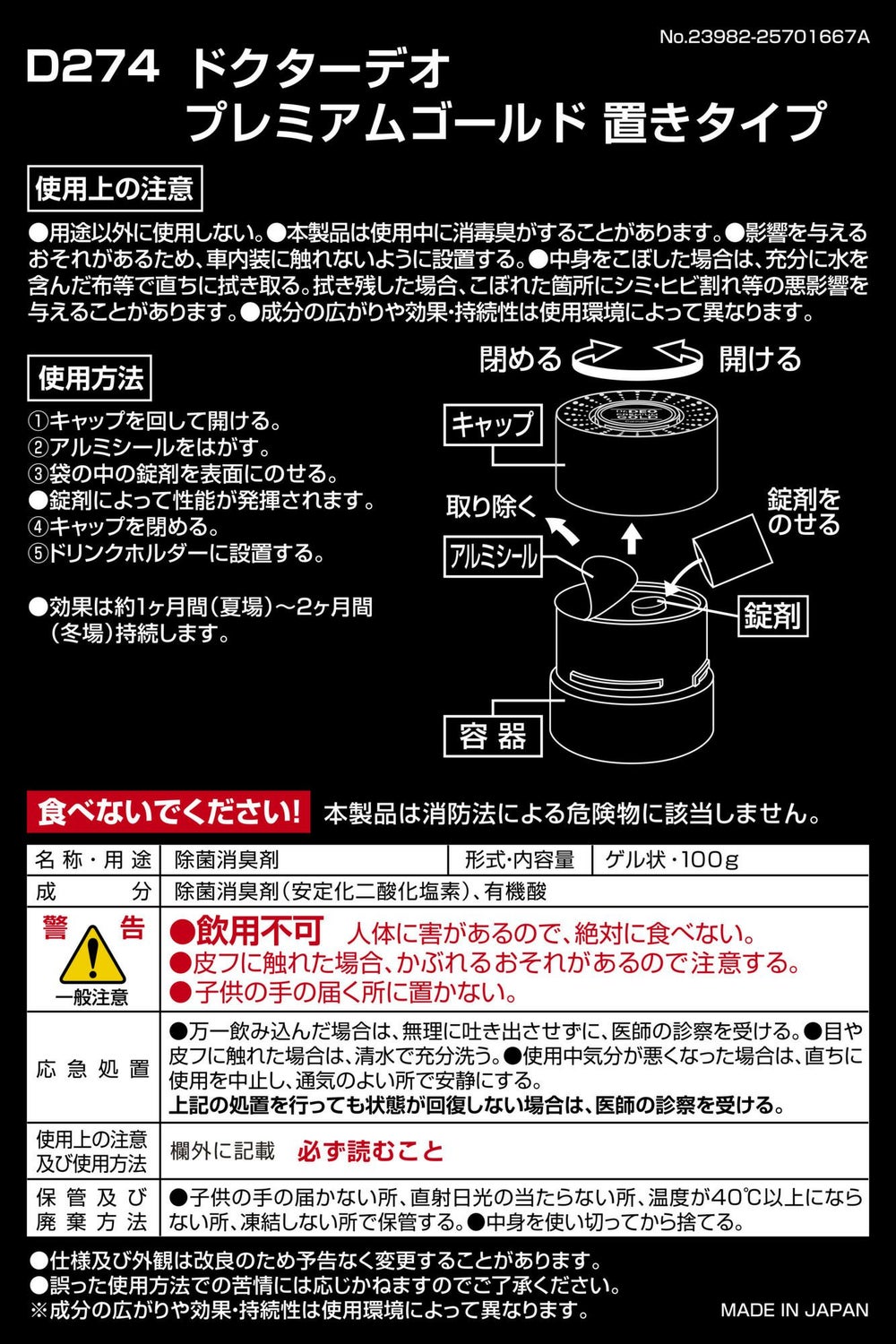 ドリンクホルダーにピッタリサイズ。車内に置くだけで悪臭成分を酸化分解し強力消臭。 ドクターデオ プレミアムゴールド 置きタイプ(D274)のお買い得2個セット。