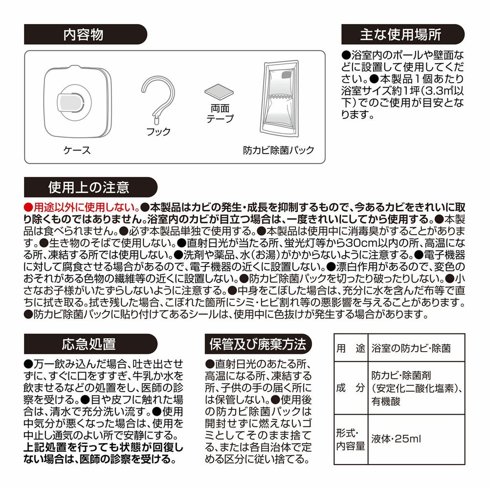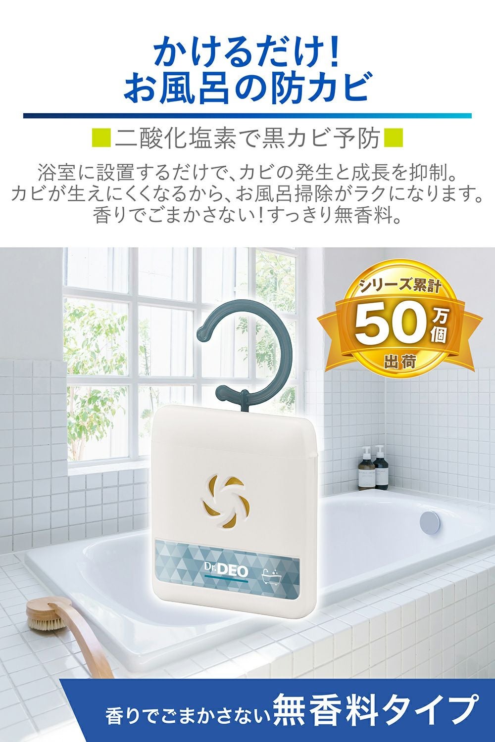 カビ取り掃除後のキレイをキープ。二酸化塩素パワーで黒カビ予防!お風呂の防カビ用ドクターデオ【無香料】