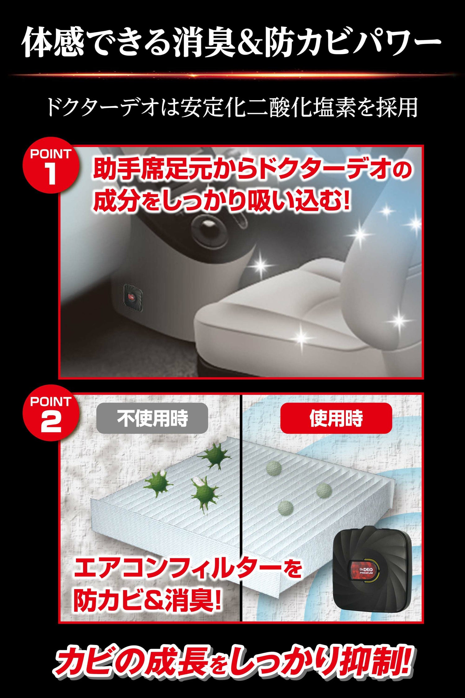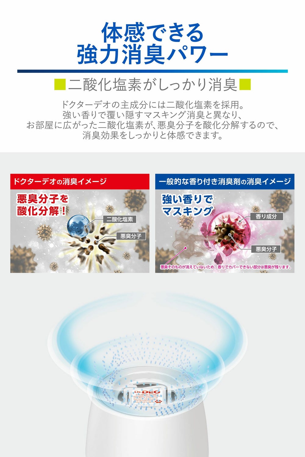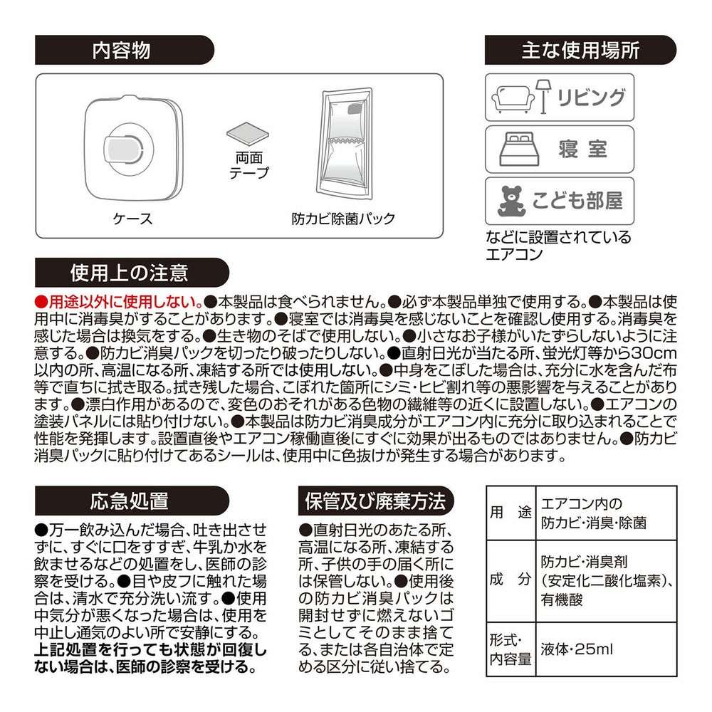 エアコン内部のニオイをスッキリ消臭。二酸化塩素パワーで消臭&防カビ!ドクターデオエアコンの除菌【無香料】