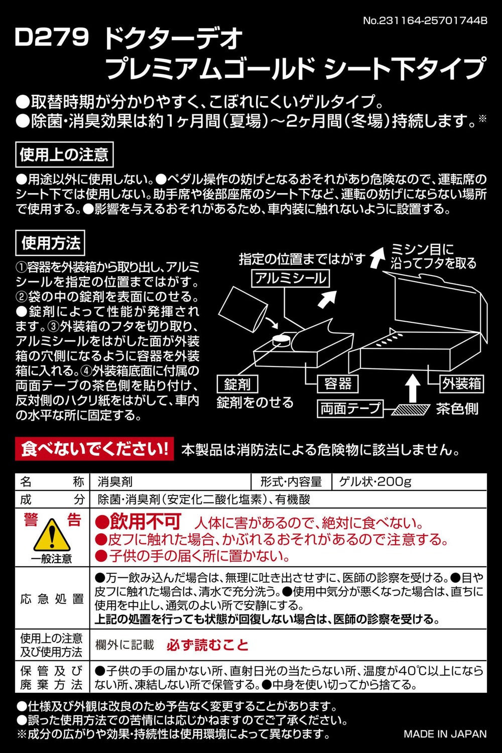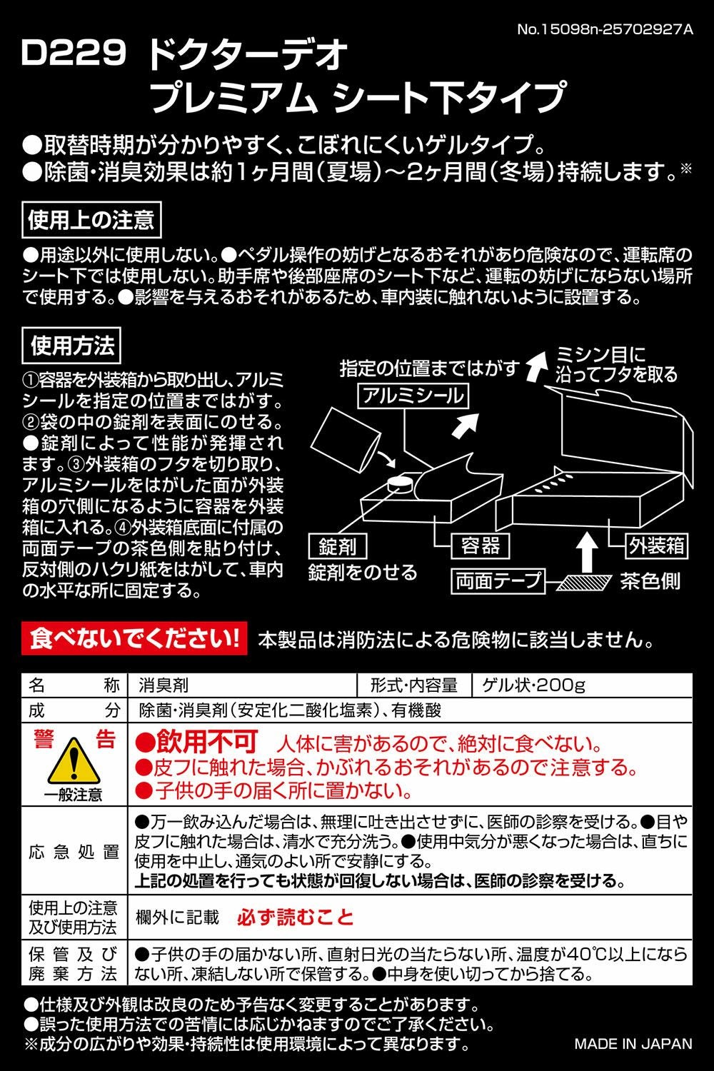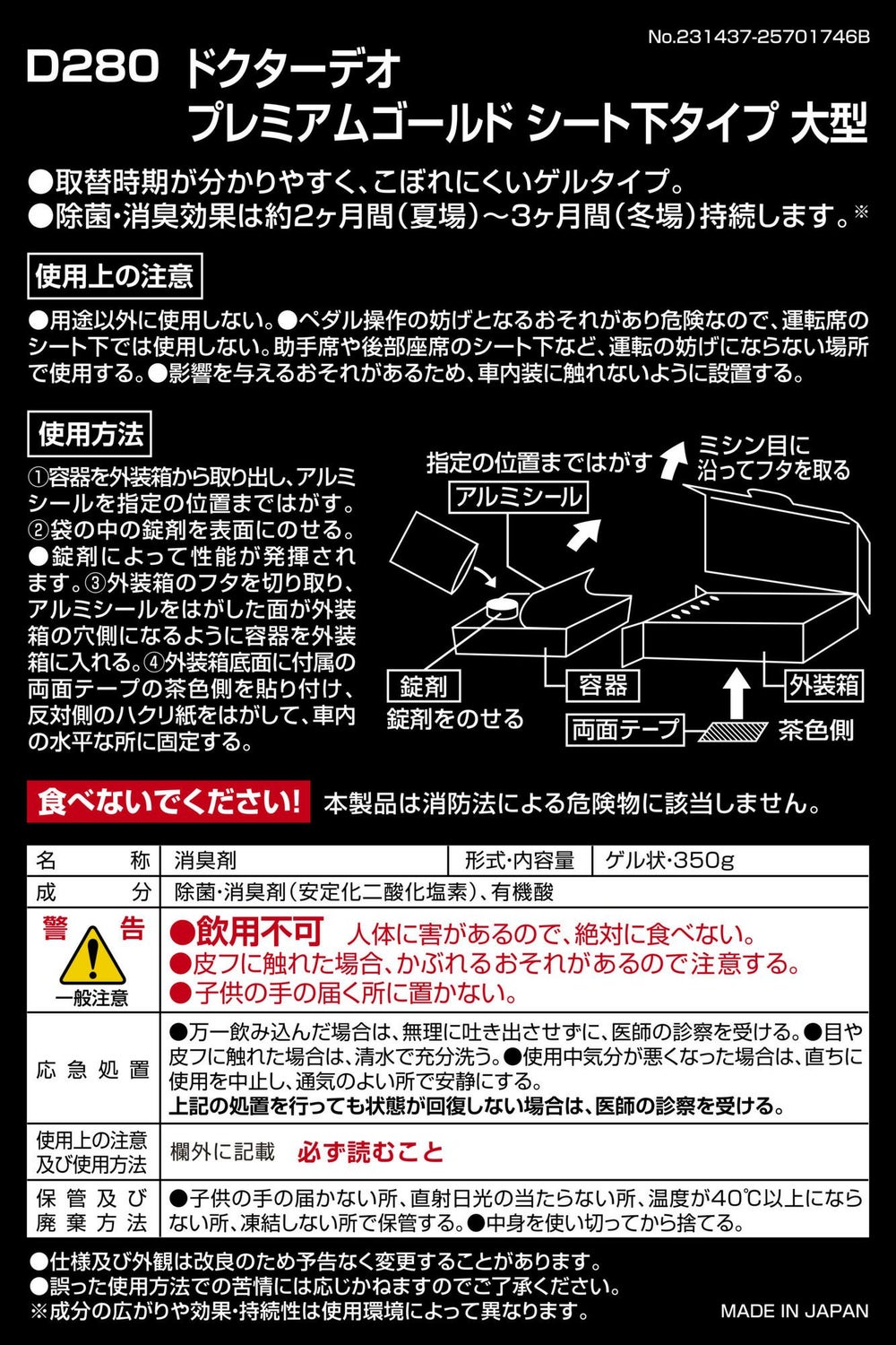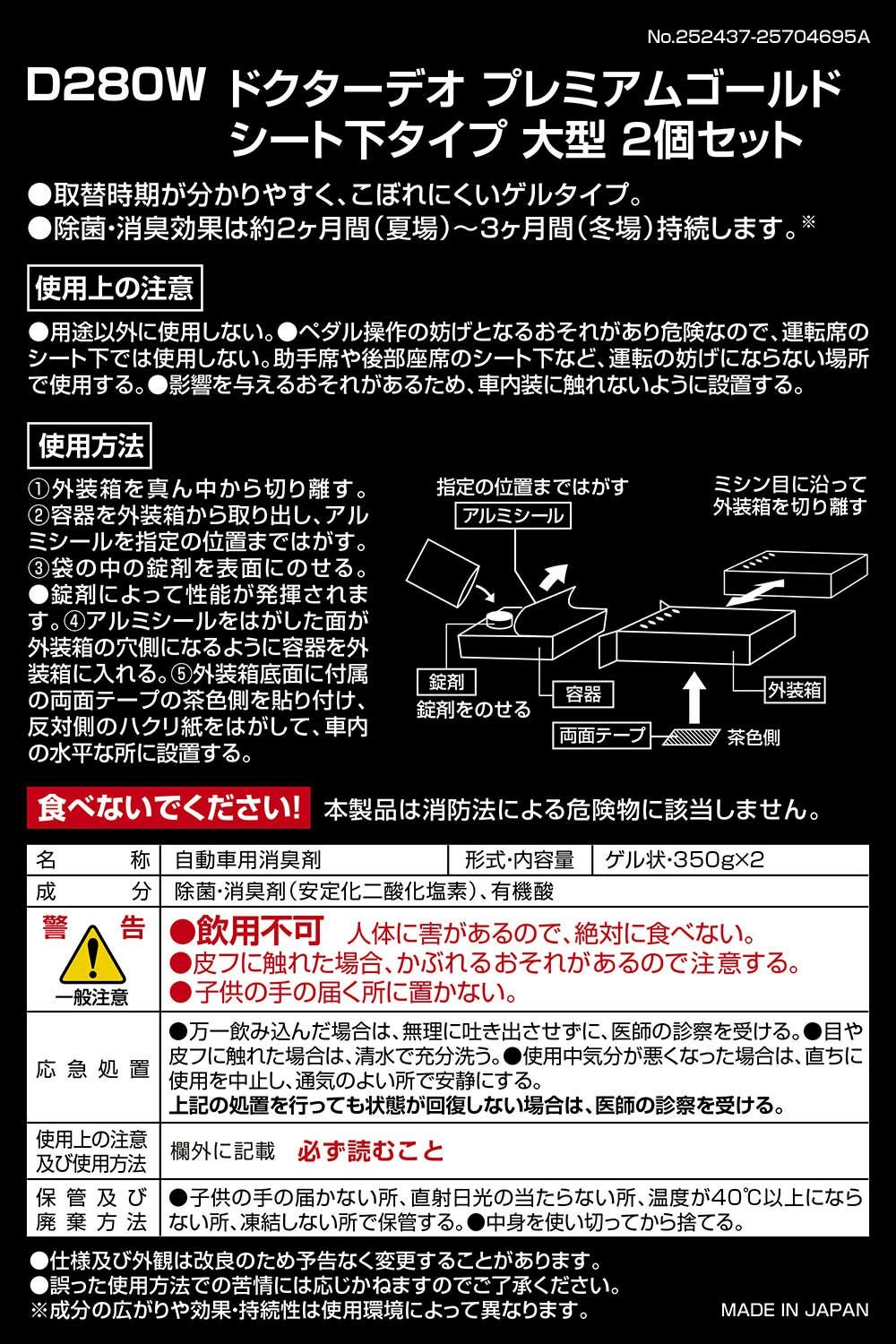 目立たず使えるシート下タイプで強力消臭。ドクターデオ プレミアムゴールド シート下タイプ 大型(D280)のお買い得2個セット。