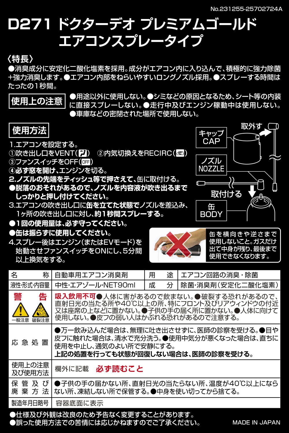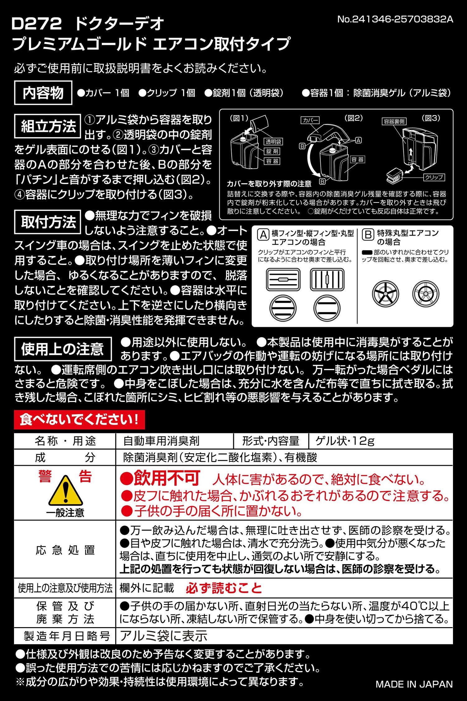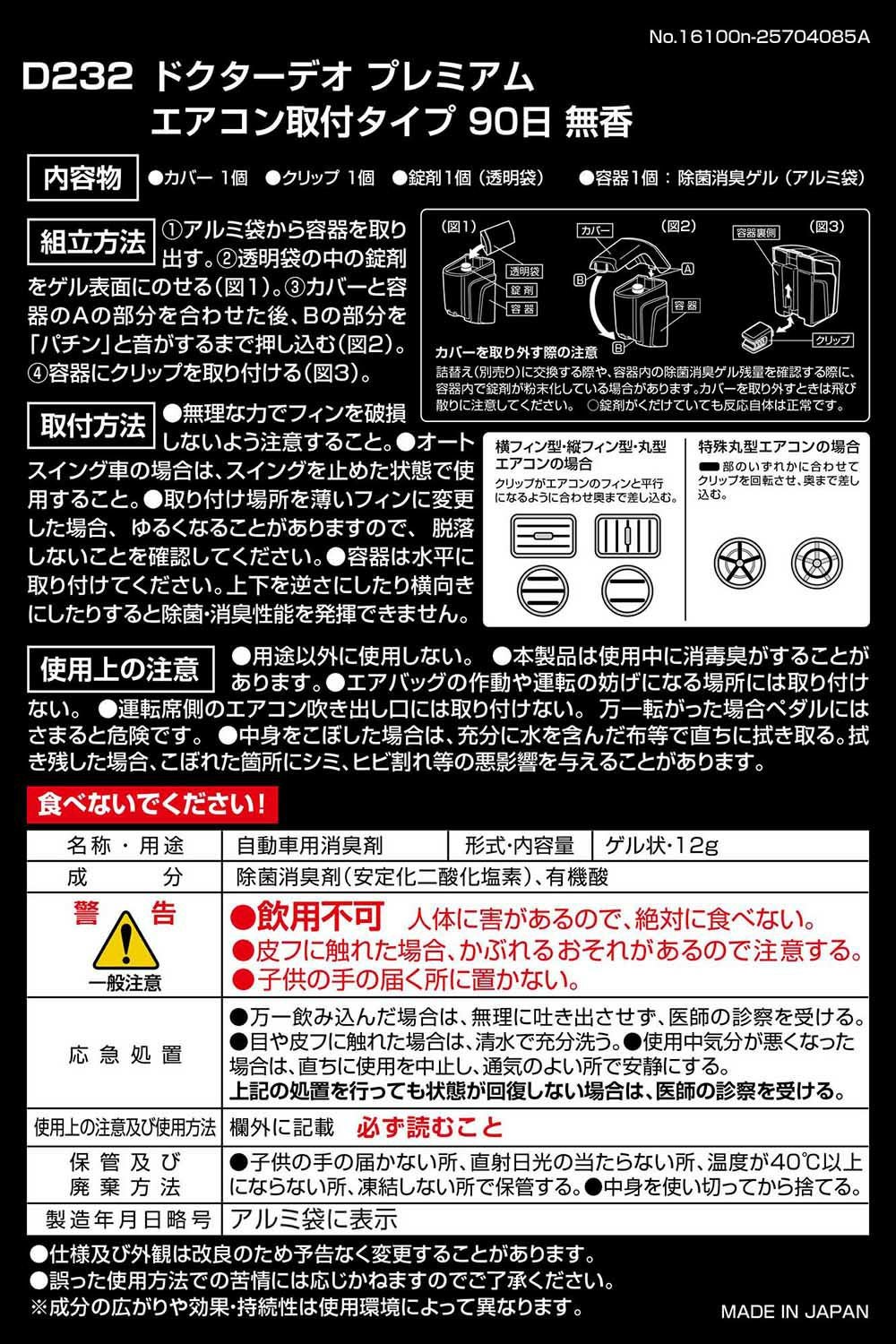 D273 ドクターデオ プレミアムゴールド エアコン取付タイプ 詰替え 無香