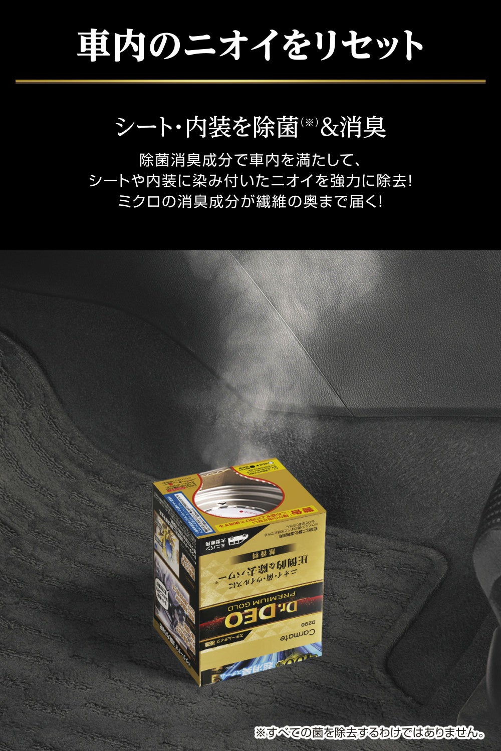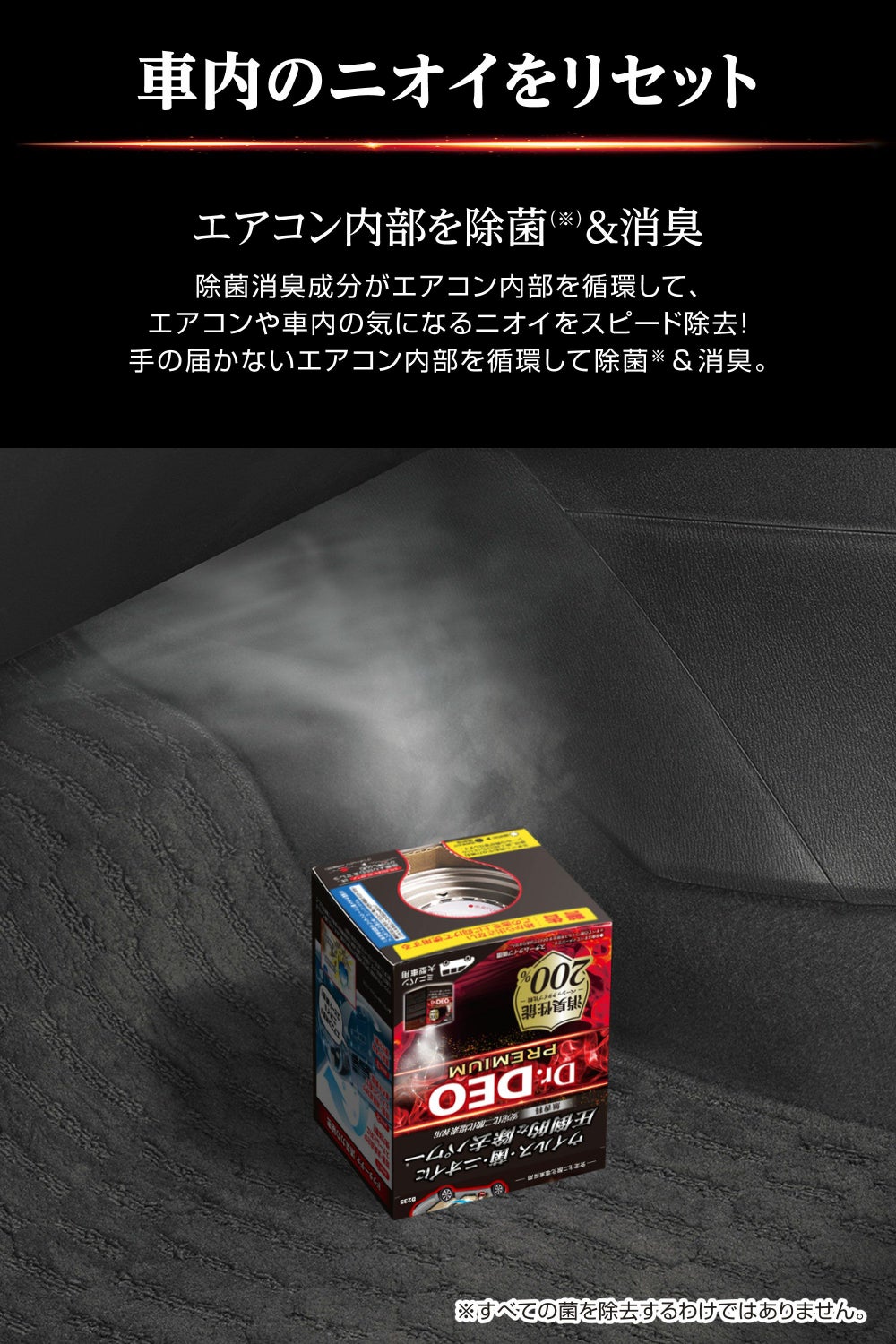 スチームに含まれる消臭成分がシートや内装に染み付いたニオイを強力に除去! ベーシックタイプ比較200%の消臭性能を実現。
