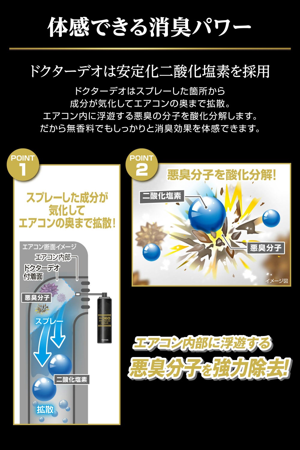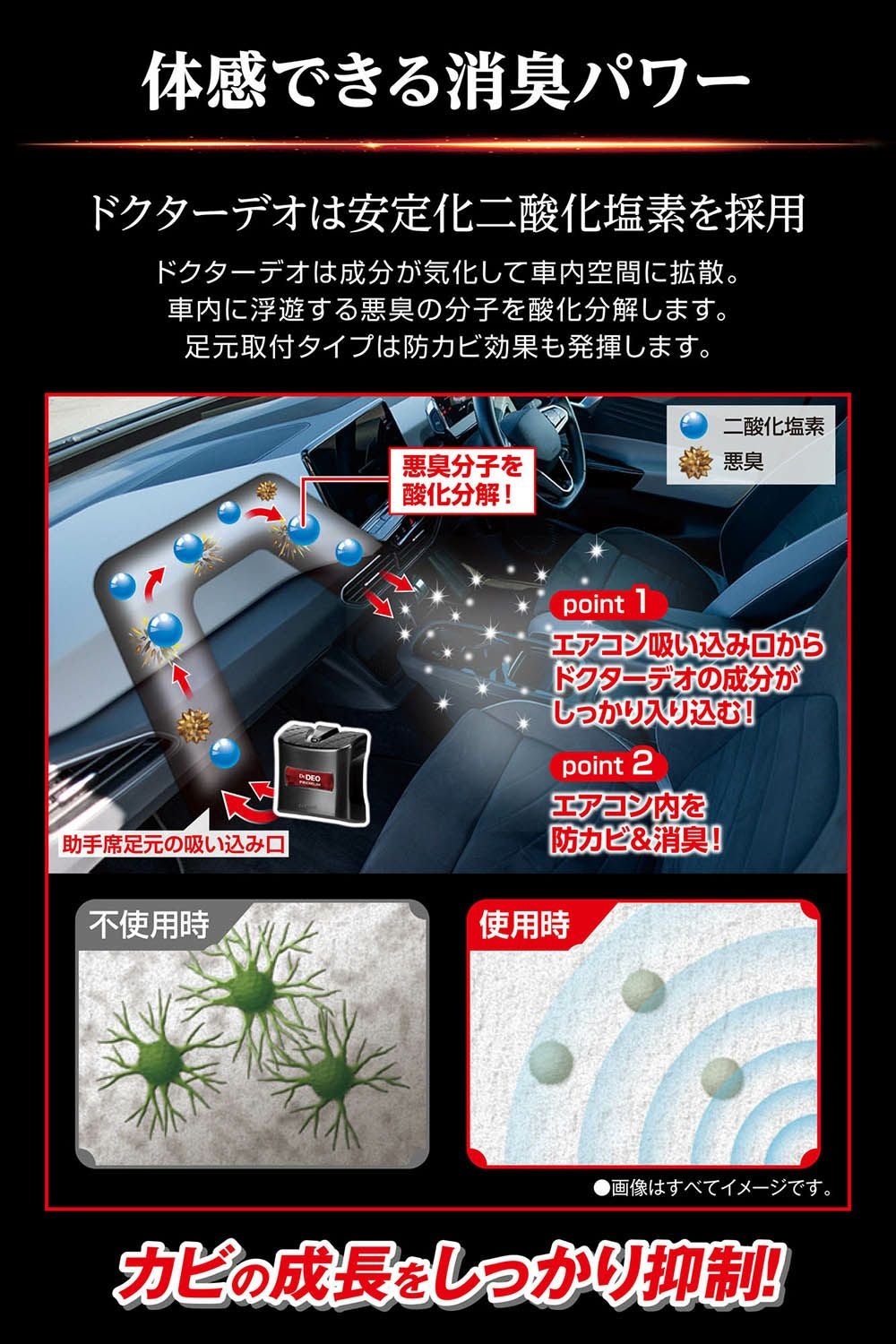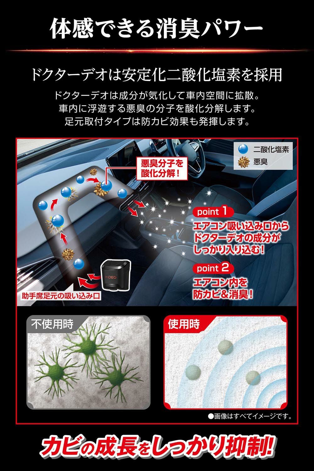 「もっと強く!」の声に応えて製品化を実現。助手席足元に設置するだけでエアコン内部を防カビ&消臭 詰替用