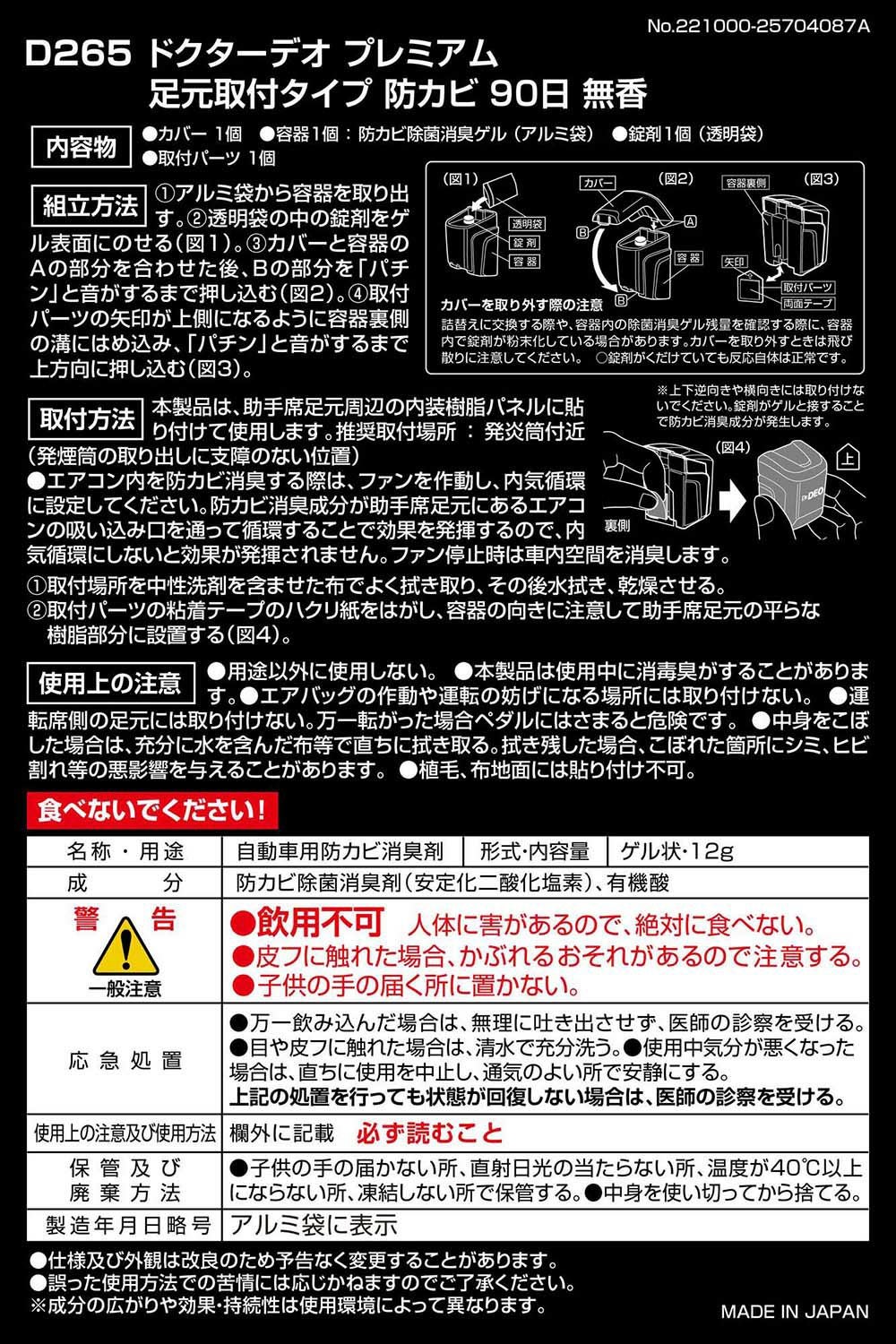 D283 ドクターデオ プレミアムゴールド 足元取付タイプ 防カビ 詰替え 無香