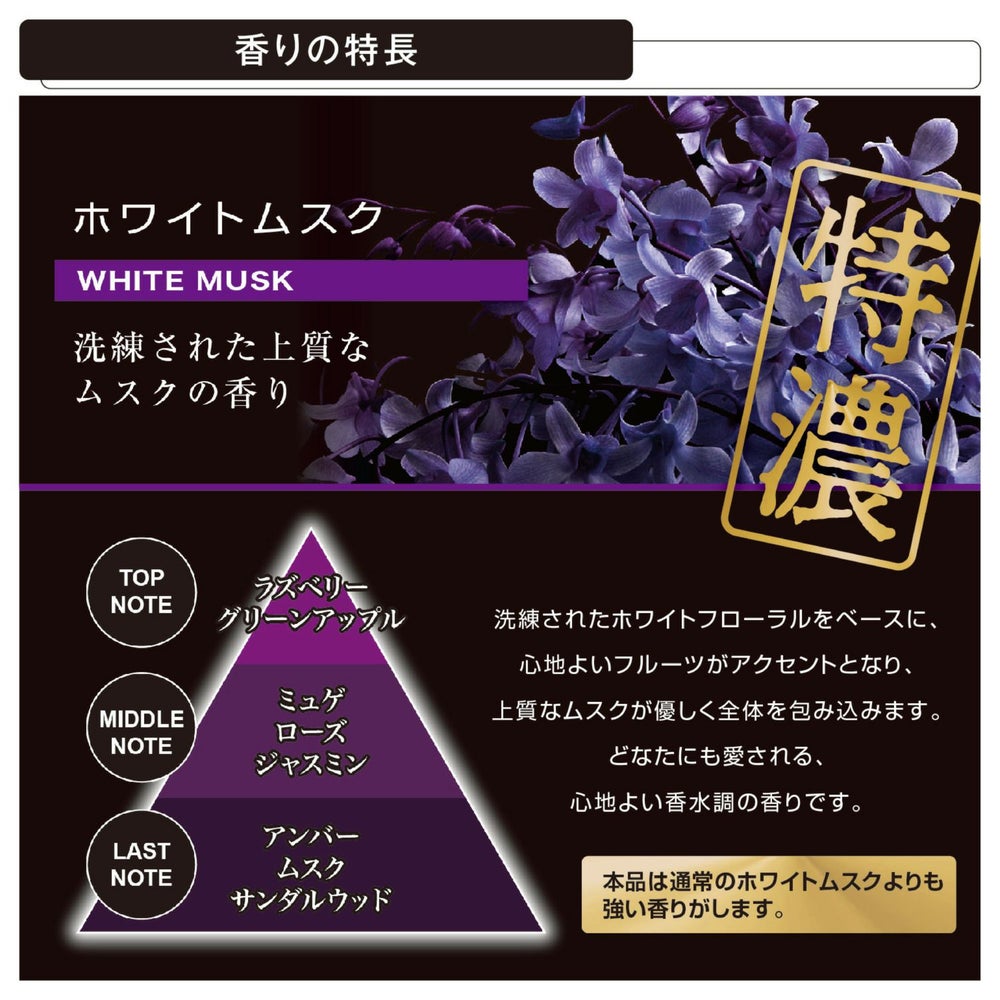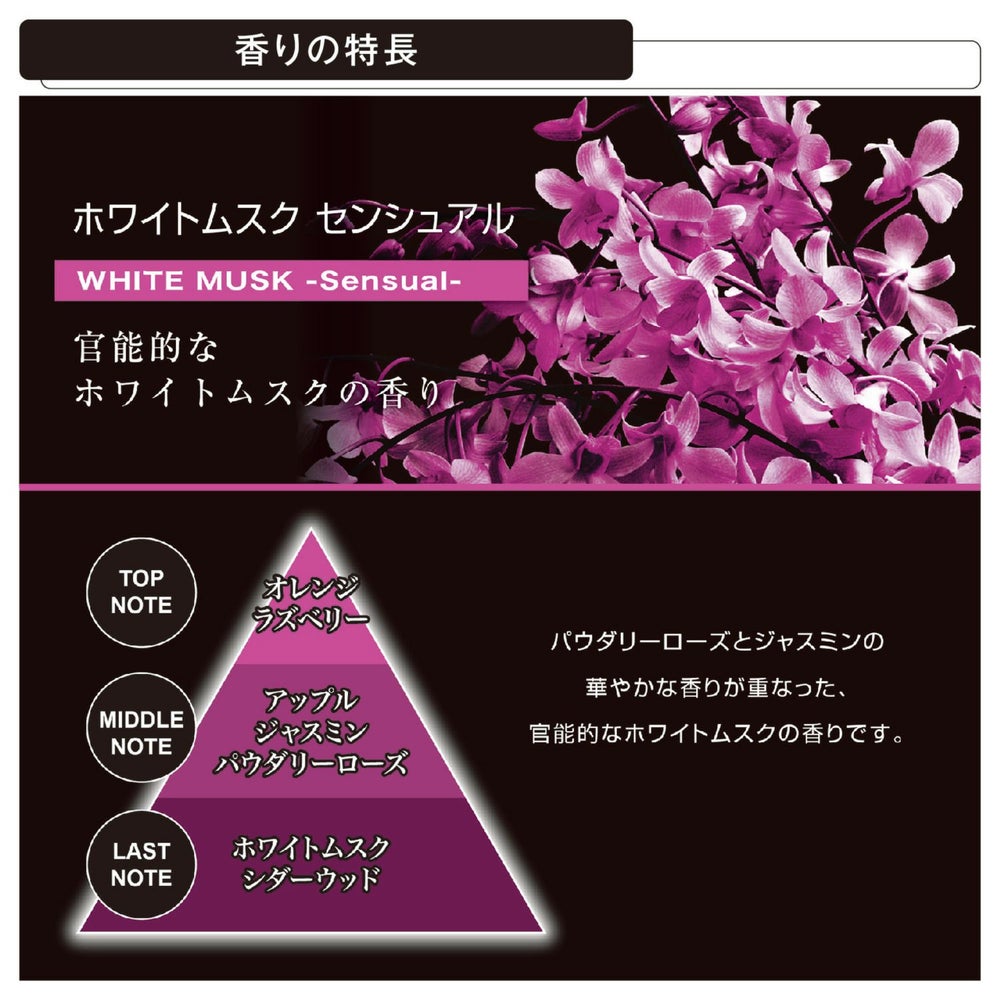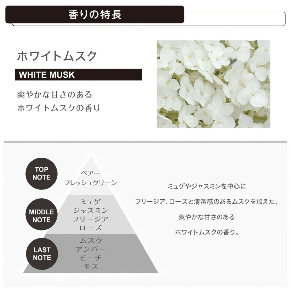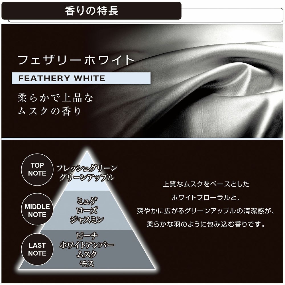 洗練されたホワイトフローラルをベースに心地よいフルーツがアクセントとなり上質なムスクが優しく全体を包み込みます。 どなたにも愛される、心地よい香水調の香りです。