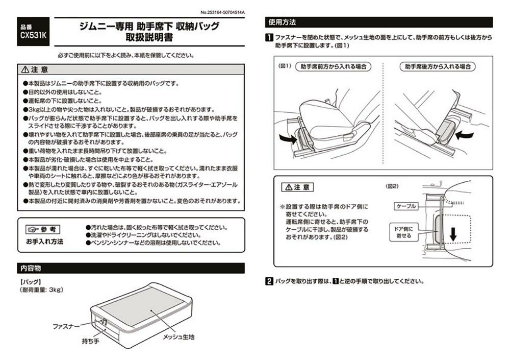 他の画像を見る ジムニーの収納力アップ!ジムニーの助手席下専用収納バッグ CX531K ジムニー専用 助手席下収納バッグ NEW WEB限定品 販売価格 ¥ 3,480 税込 ジムニーの収納力アップ!ジムニーの助手席下専用収納バッグ 詳細を見る お気に入りに登録する