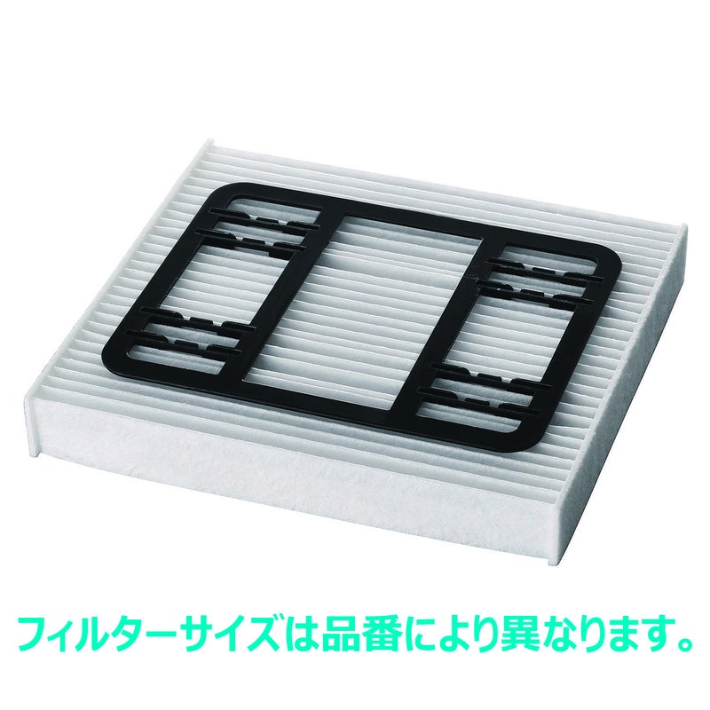 たばこ臭や悪臭を除去する消臭フレームとエアコンフィルターのセット品。エアコンフィルターは通気性を落とさずに花粉、チリ・ホコリ、カビの胞子を取除くことができ、10ミクロン以上の粒子を99.9%除去します(当社測定値)。消臭フレームには、たばこ臭や悪臭を除去し、フローラルウッディムスクの香りを放つ「たばこ消臭香料」を採用。