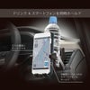 たたんだ時はスマートフォンホルダー、開いた時はドリンク&スマートフォンホルダーとして使えます。手帳型ケースに入れたスマートフォンもホールドできます。