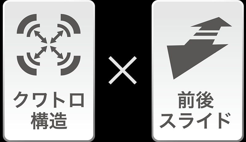 【クワトロ構造に前後スライド構造を搭載】