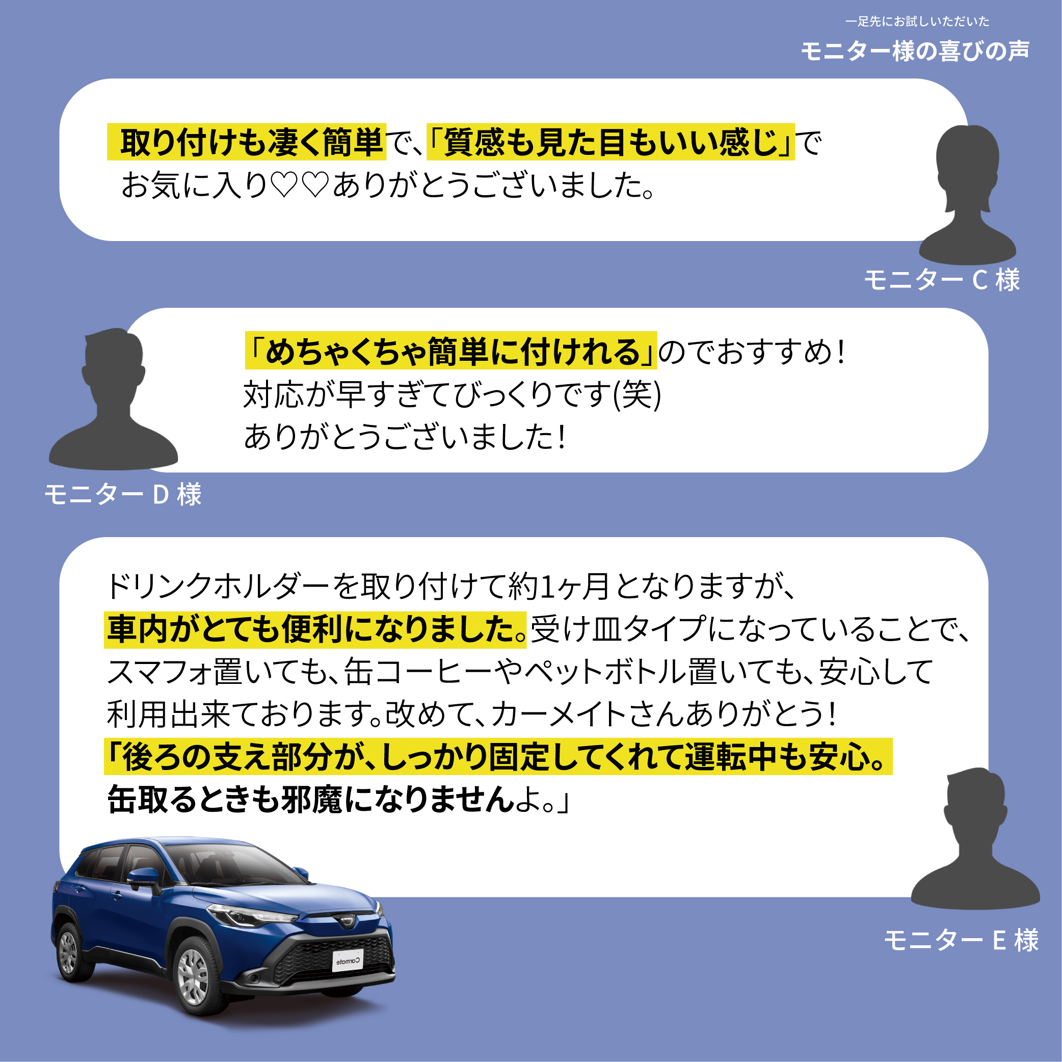 カローラクロスオーナーの方々に自信持って、お薦めできるドリンクホルダーです。