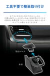 エアコン吹き出し口下のスペースに付属の取付ベースを貼り付け、取付ベースと一番下のエアコンフィンに本体のフックが引っかかるように取り付けます。工具不要なため、カンタンに取り付けることができます。