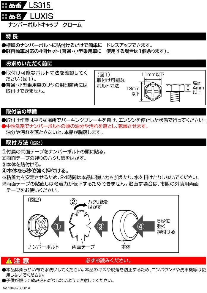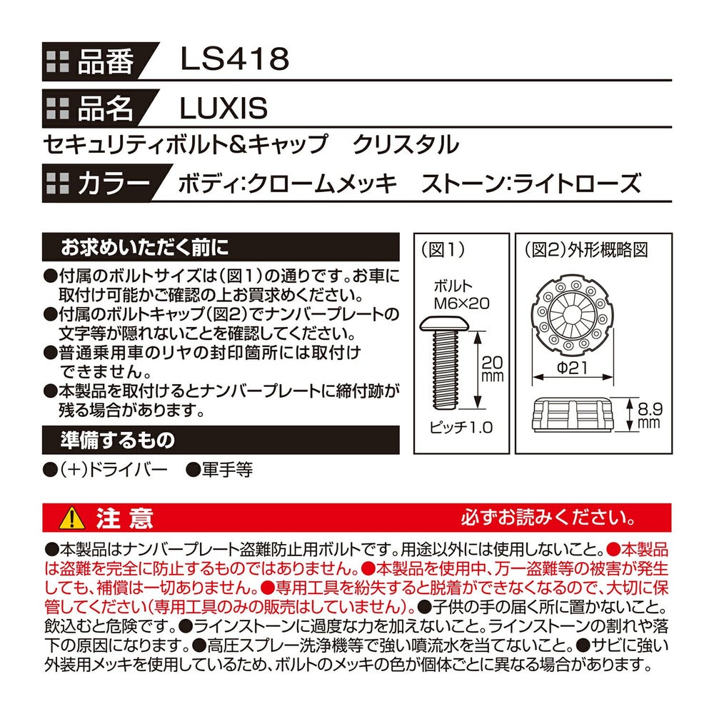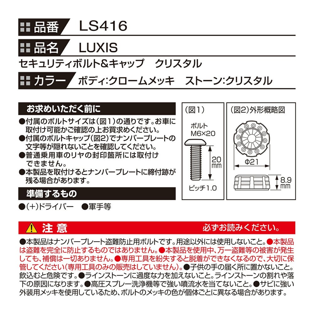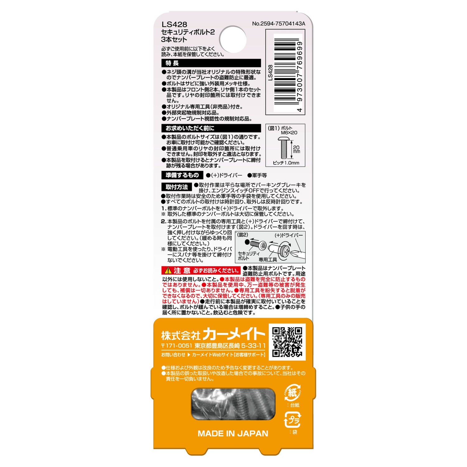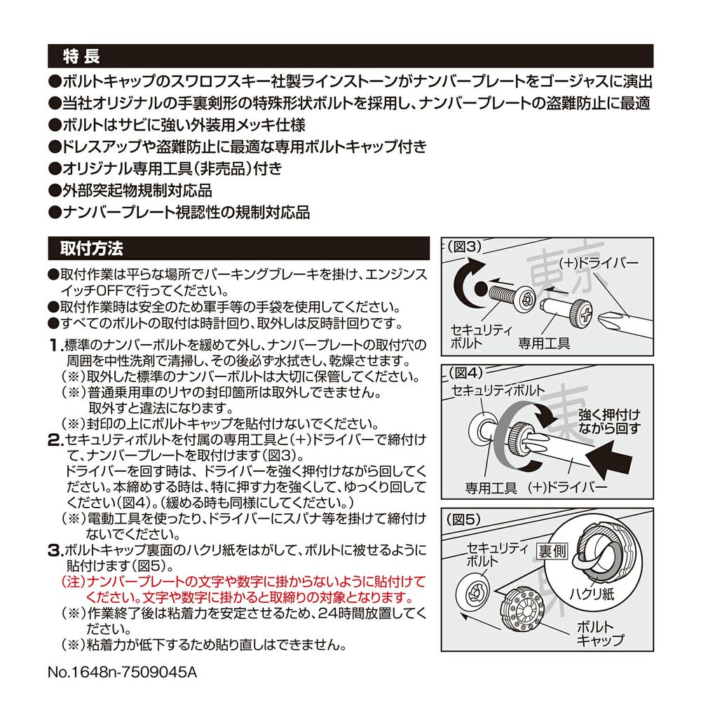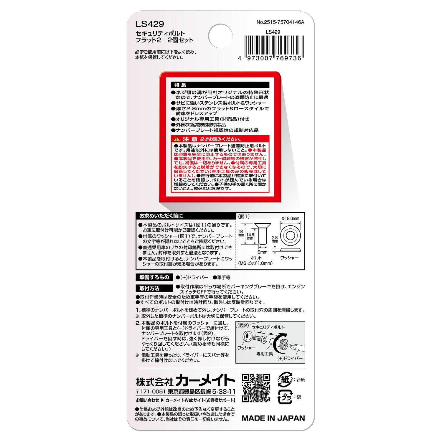 他の画像を見る 当社オリジナル特殊ボルトでナンバープレートを守る!専用台形ワッシャーでフラットスタイルを演出。 LS429 ステンレス セキュリティボルト フラット2(2個セット) NEW 販売価格 ¥ 1,600 税込 詳細を見る お気に入りに登録する