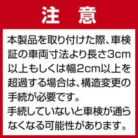 ・本製品を取り付けた際、車検証の車両寸法より長さ3cm以上もしくは幅2cm以上を超過する場合は、構造変更の手続が必要です。