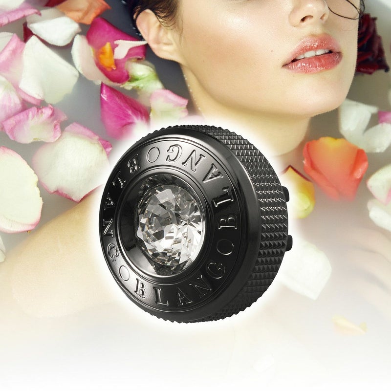 ブラッククロームメッキのカバーに、大粒のクリスタルを埋め込んだ宝石のような芳香剤です。