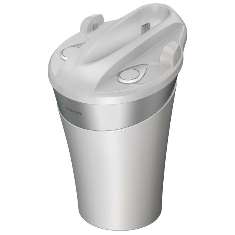 本製品は、車のカップホルダーに置いて使用。本体はタンブラーのような形状で、ボディをカップホルダーに収まるサイズで設計しているので、様々な車種で使用可能。