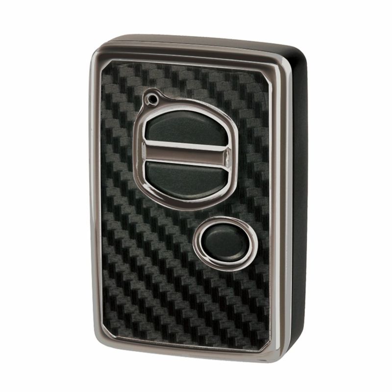 高級感のあるカーボン調シートを表面にあしらったキーカバー。ケースに純正リモコンキーを入れるだけの簡単装着。
