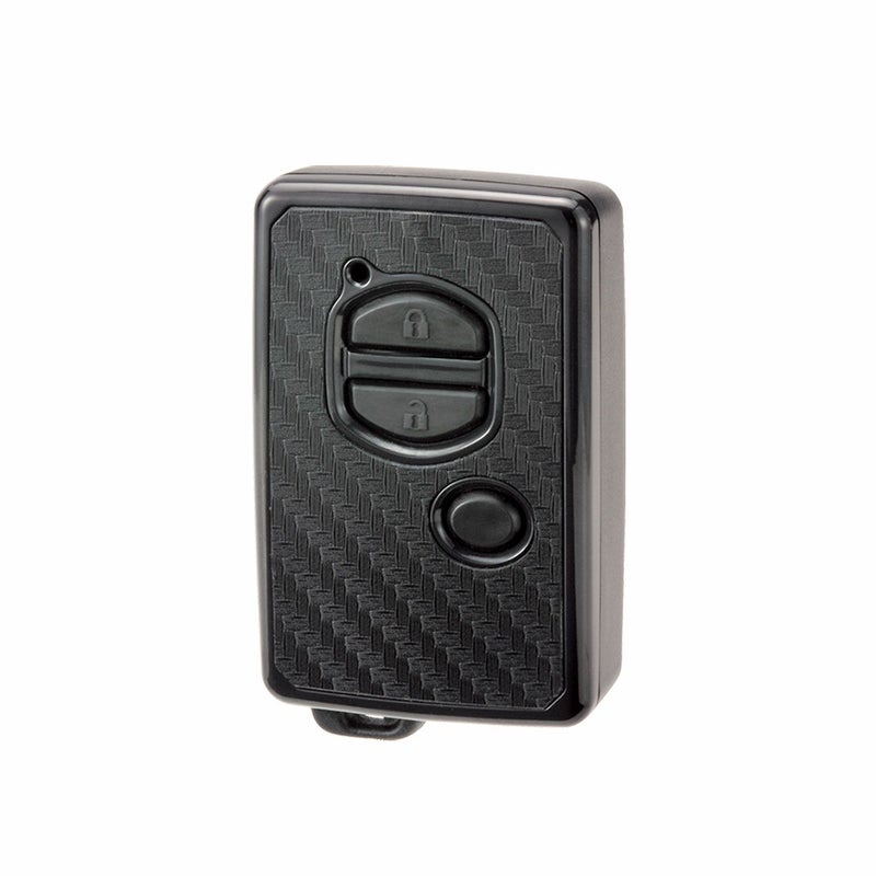 高級感のあるカーボン調シートを表面にあしらったキーカバー。ケースに純正リモコンキーを入れるだけの簡単装着。