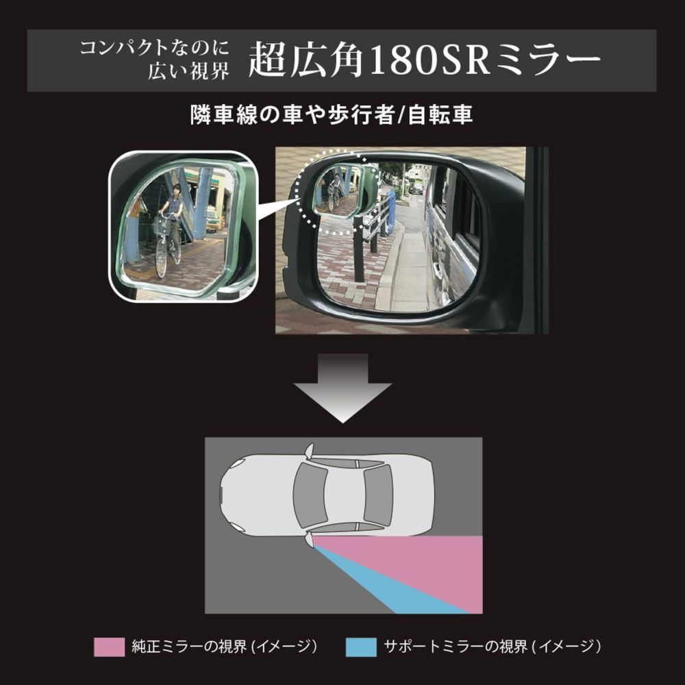 他の画像を見る 見えないところが見えるようになる。あんしんサポートミラー DZ500 サポートミラー 180SR ワイド 販売価格 ¥ 1,320 税込 見えないところが見えるようになる。あんしんサポートミラー 詳細を見る お気に入りに登録する