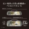 半径3000mmの球体から切り出された緩曲面鏡。(3000SRとは半径3000㎜の球体の曲率を指します。)曲率を大きくすると(1400SR等)広い範囲を映し出すことができますが、その反面、実際の像より映し出される像が小さくなっていきます。(実際の距離より遠く感じます)そこで、本製品はワイドな視界と自然な距離感のバランスを考えた曲率3000SRに設定しています。純正ルームミラーの平面鏡より広い範囲の光を反射する(映す)ことができるので、純正ルームミラーと比べて視界面積が約2倍に広がります。均一な球曲面から切り出されたミラーだからこそ、歪みのないハッキリとした像を映し出すことができます。