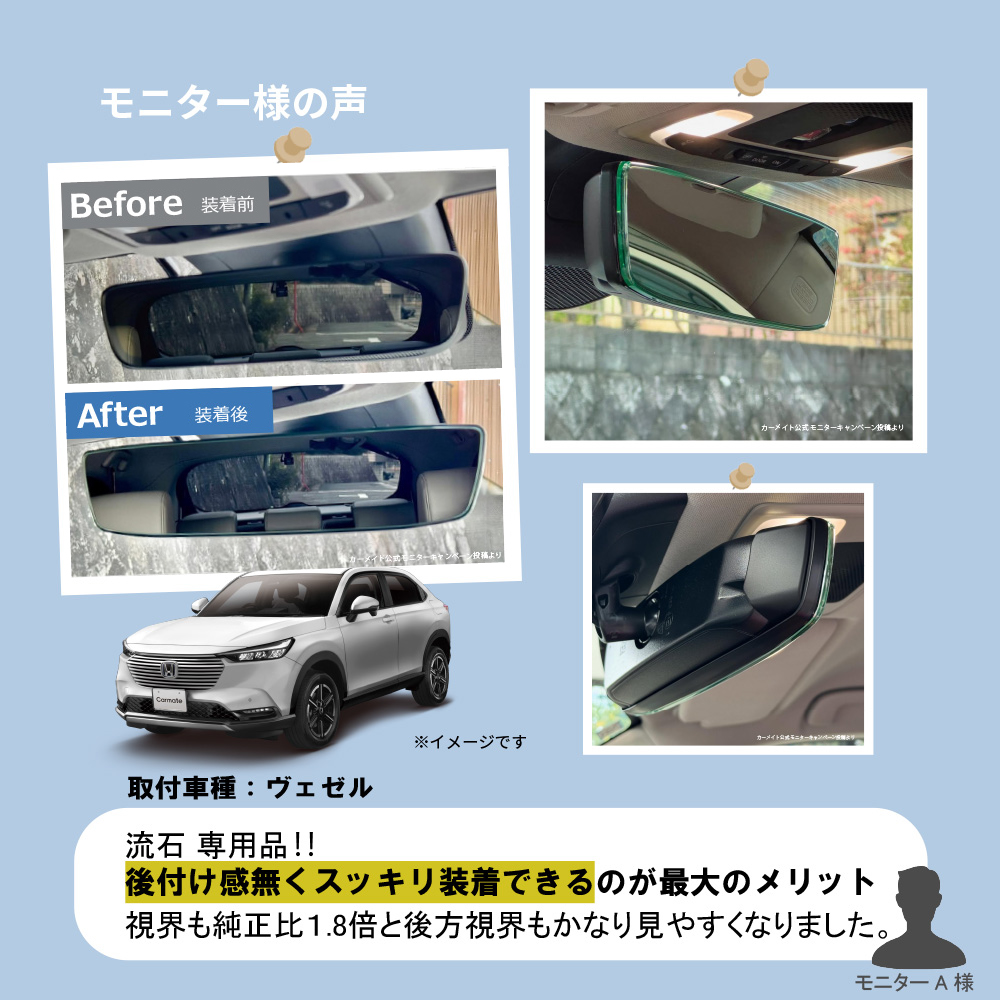 ホンダ車専用に設計された後付け感のないワイドリアビューミラー●ホンダ車 専用設計のワイドリアビューミラー Aタイプ クローム鏡