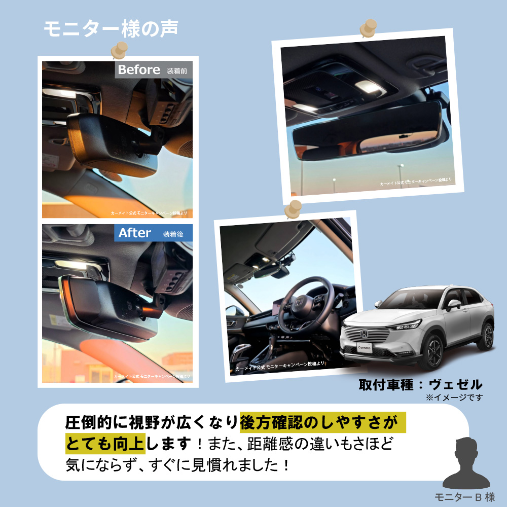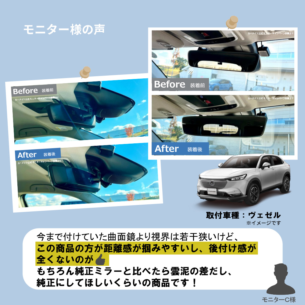 ・本製品は緩曲面鏡のため、純正ルームミラーとは映り方や距離感が異なります。