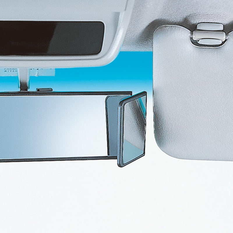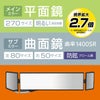 270mmの平面鏡に、左右には取外可能な曲面鏡が付いたルームミラー。最大幅400mmあるので、よりワイドな視界を確保できます。