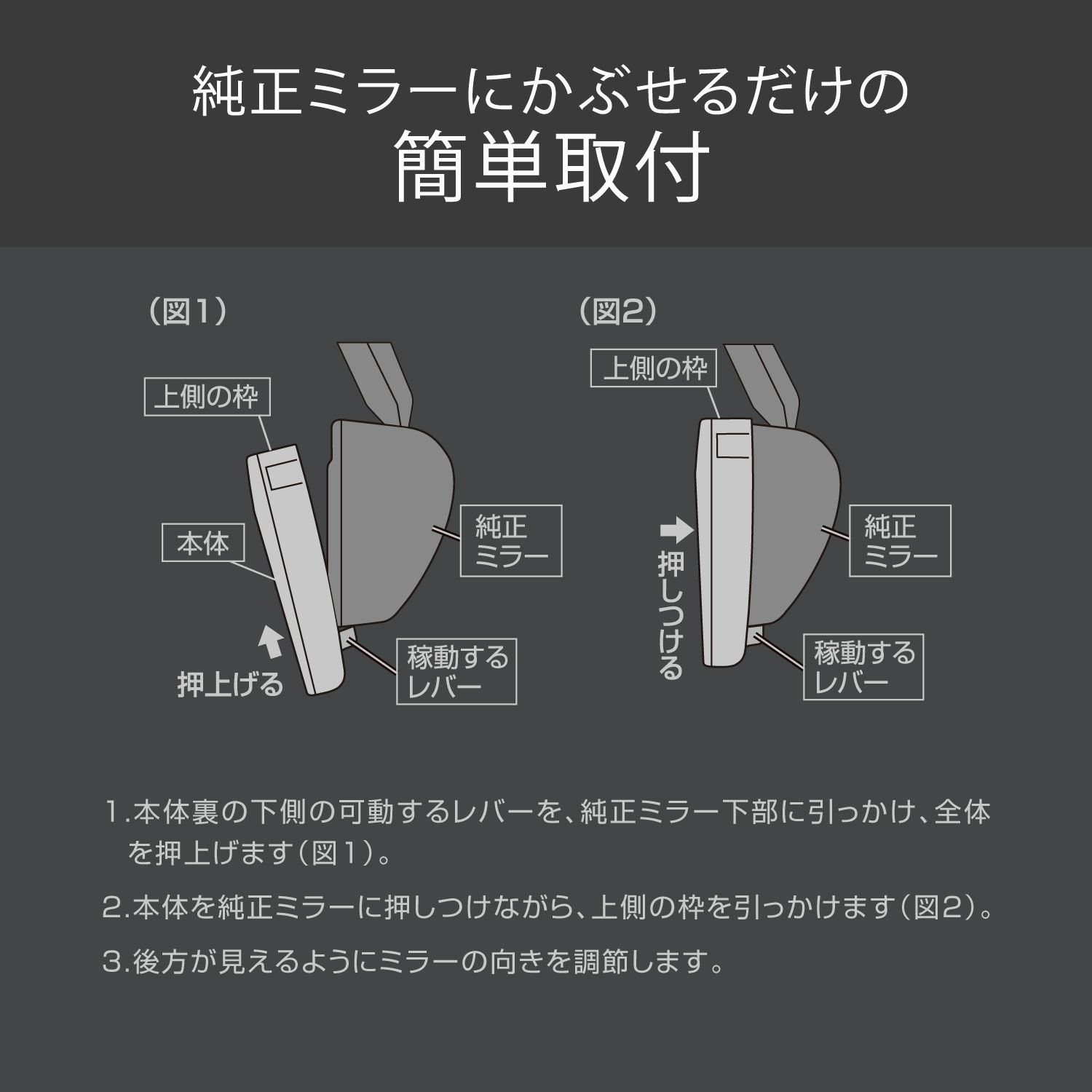 他の画像を見る フレームレス風デザインの高反射鏡 DZ556 リヤビューミラー エッジ 3000SR 240 高反射 販売価格 ¥ 1,980 税込 フレームレス風デザインの高反射鏡 詳細を見る お気に入りに登録する