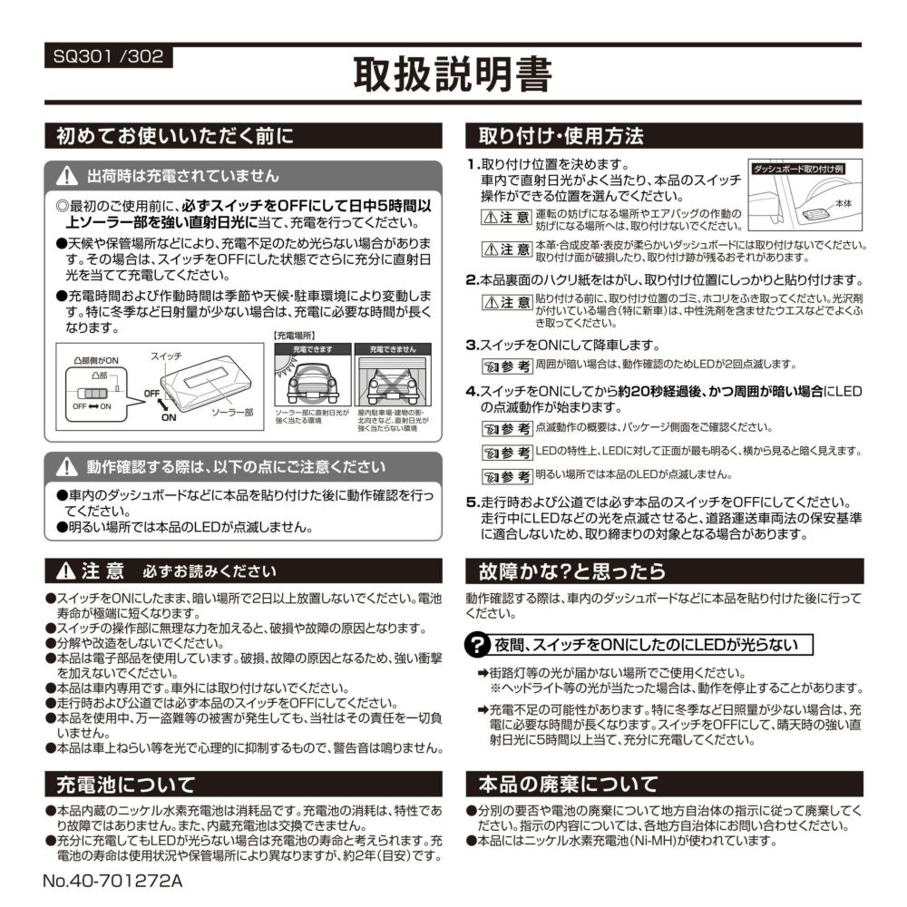 他の画像を見る 衝撃センサー内蔵/暗くなると自動的に点滅 SQ73 ナイトシグナル デコ RE 販売価格 ¥ 3,122 税込 衝撃センサー内蔵/暗くなると自動的に点滅 詳細を見る お気に入りに登録する