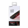 スタイリッシュなデザインのセキュリティ。レッドLEDが待機時残光点滅、衝撃感知時激しく点滅。走行中の連続振動感知で自動停止(特許登録済)。光センサー内蔵で暗くなると自動点滅開始。