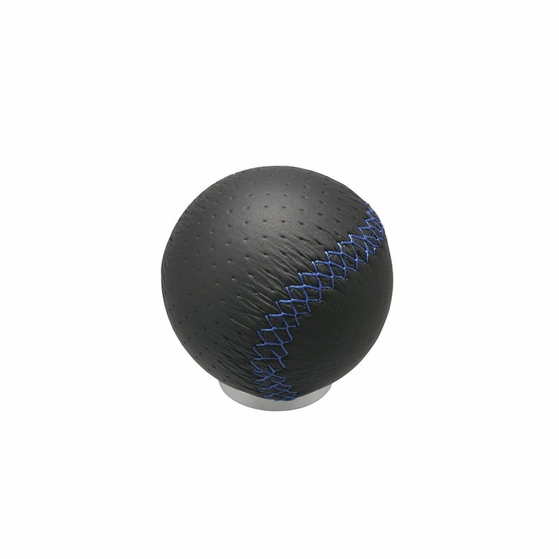 握りやすい球型の本革ノブ。革は自動車メーカー同等品を使用し、鮮やかなブルーステッチは手縫いにより日本国内で生産。本体は亜鉛ダイキャスト製でシフトフィールを向上させる重量設計。基準重量240g。シフトフィールを重さがアシスト! シフトストロークを短くするローポジションタイプ。86(ZC6)、BRZ(ZC6)、インプレッサ(GD,GR,GG,GV)、ランエボ(CT9A)のリバースリング付6MTに対応。ゲートAT車にも対応。対応シャフトネジ径:8mm、10mm、12mm。