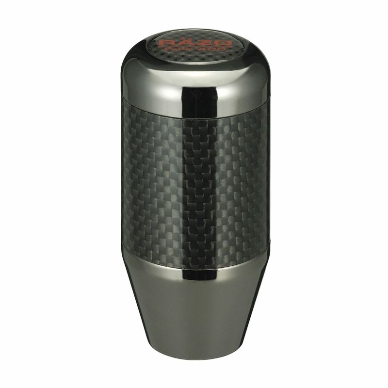ブラックメッキ+カーボンファイバー巻き仕様。胴体とTOP部分にカーボンファイバーを採用した贅沢なシフトノブ。ドリフトや素早いシフトチェンジを行いたい方、シフトストロークが短い車にお勧め。シフトノブの重さがシフト操作に及ぼす影響をお楽しみください。基準重量 400g。3段階高さ選択機構付。対応シャフトネジ径:8mm、10mm、12mm。