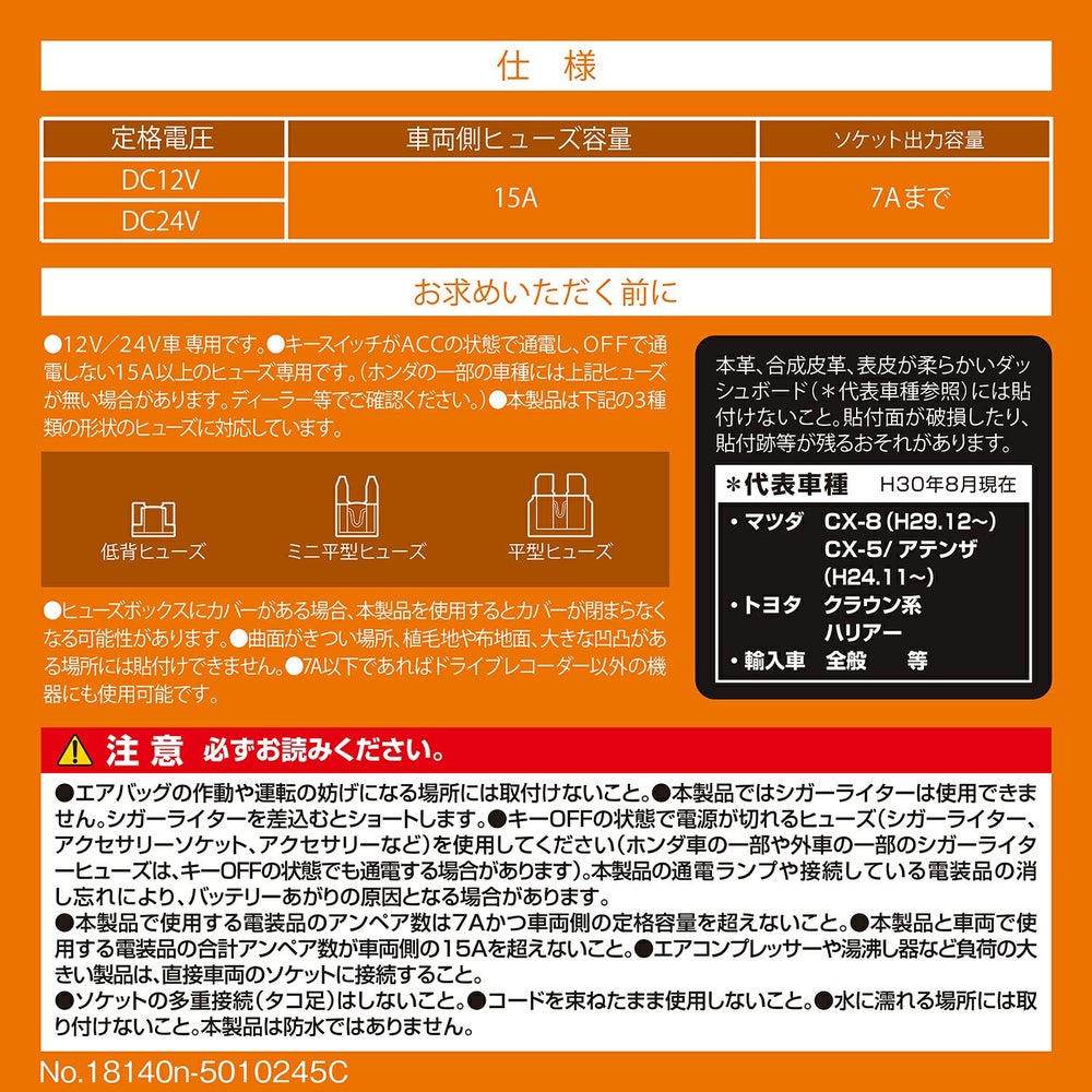 他の画像を見る ドライブレコーダーの配線作業に最適 出力容量7A 低背/ミニ平/平型の3種類のヒューズに対応 CZ483 ヒューズ電源 増設ソケット ドライブレコーダー用 2連 販売価格 ¥ 1,780 税込 ドライブレコーダーの配線作業に最適 出力容量7A 低背/ミニ平/平型の3種類のヒューズに対応 詳細を見る お気に入りに登録する