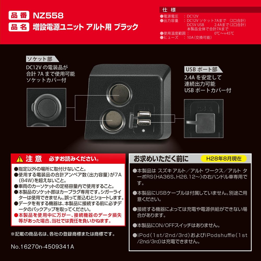 他の画像を見る アルト専用 内装にマッチする増設電源 NZ558 増設電源ユニット アルト用 ブラック 販売価格 ¥ 2,970 税込 アルト専用 内装にマッチする増設電源 詳細を見る お気に入りに登録する