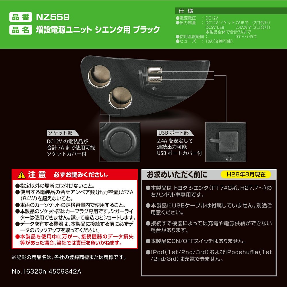 他の画像を見る シエンタ専用 内装にマッチする増設電源 NZ559 増設電源ユニット シエンタ用 ブラック 販売価格 ¥ 3,520 税込 シエンタ専用 内装にマッチする増設電源 詳細を見る お気に入りに登録する