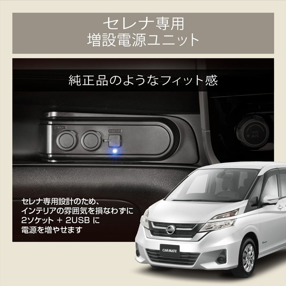 他の画像を見る 日産セレナ「C27系 H28.8~R4.12」専用設計 内装にマッチする増設電源 NZ572 増設電源ユニット セレナ用 ブラック 販売価格 ¥ 3,850 税込 セレナ C27に2ソケット+2USBに電源を増やせます 詳細を見る お気に入りに登録する