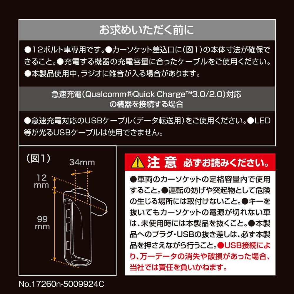 他の画像を見る Quick Charge3.0対応USB電源+12Vアクセサリーソケット CZ428 USB電源 3ポート クイックチャージ3.0対応+ソケット 販売価格 ¥ 2,860 税込 Quick Charge3.0対応USB電源+12Vアクセサリーソケット 詳細を見る お気に入りに登録する
