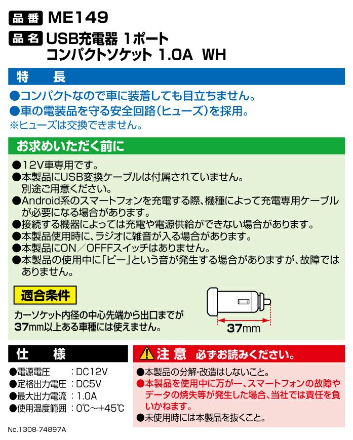 他の画像を見る 目立たないコンパクトなUSBソケット(1.0A) ME149 USB充電器 1ポート コンパクトソケット 1.0A WH 販売価格 ¥ 941 税込 目立たないコンパクトなUSBソケット(1.0A) 詳細を見る お気に入りに登録する