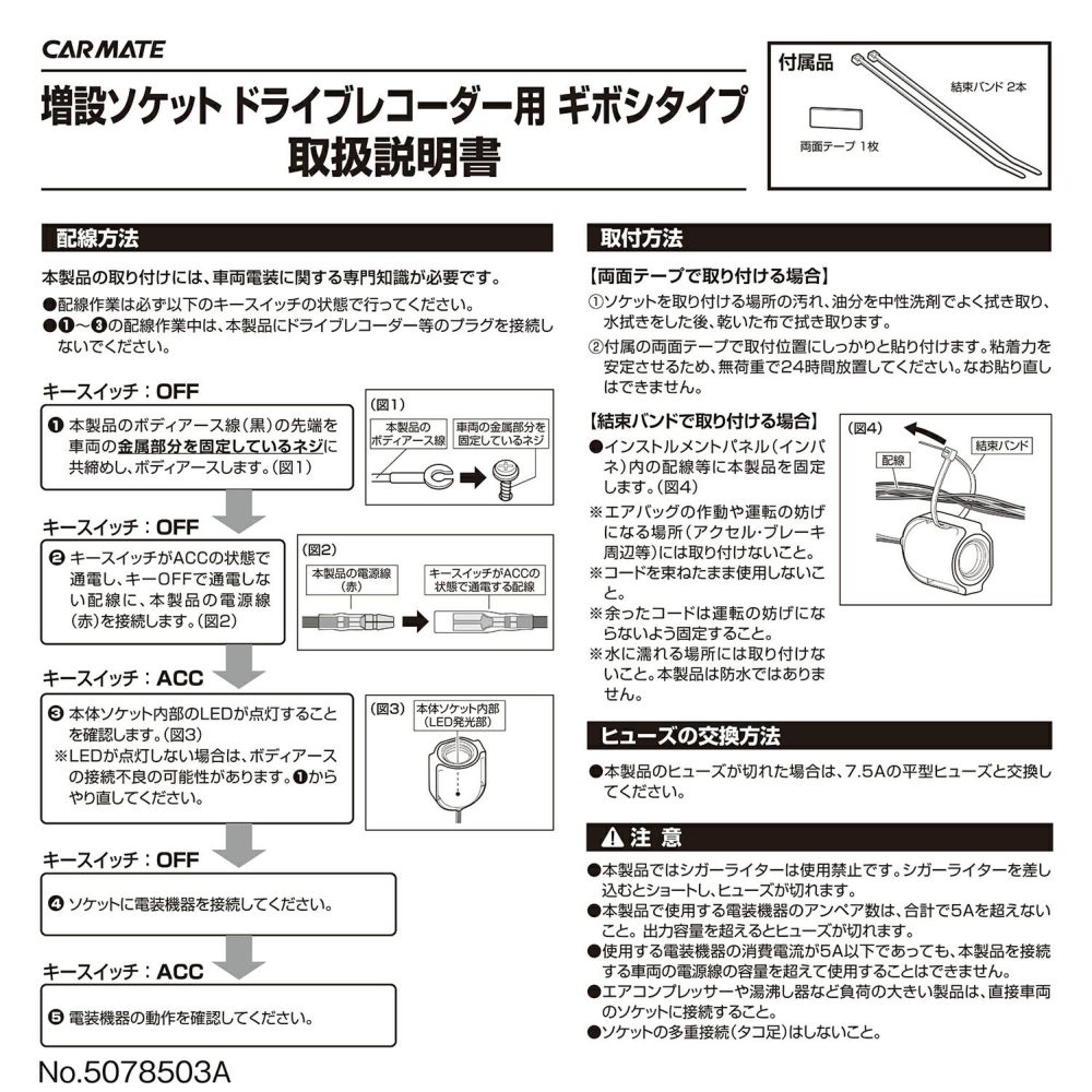 他の画像を見る ドライブレコーダーの配線作業に最適! CZ484 増設ソケット ドライブレコーダー用 ギボシタイプ 販売価格 ¥ 1,280 税込 ドライブレコーダーの配線作業に最適! 詳細を見る お気に入りに登録する