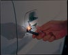 吸収した静電気でランプが点灯。カラビナ形状でカギ等を束ねるのに便利。