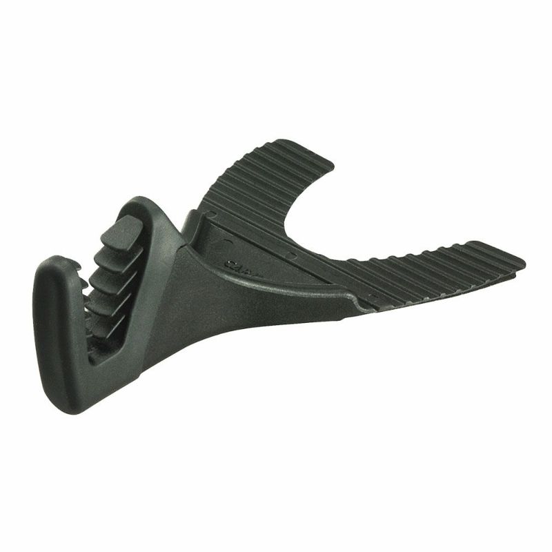 ルームミラーに取付けるスタンドタイプのサングラスホルダー。軟質エラストマーでサングラスをソフトにホールド。