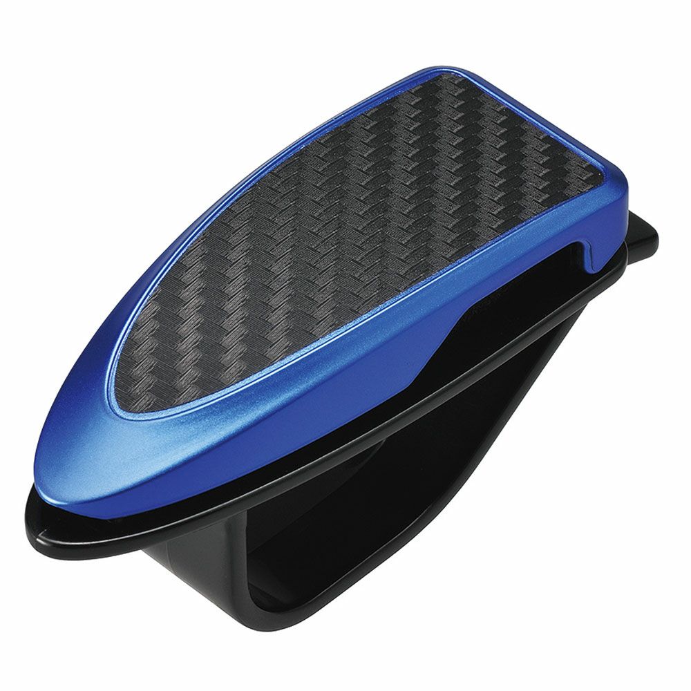 カーボン柄とブルーメタリックのスポーティなサングラスクリップ。駐車券などを挟めるクリップ付き。