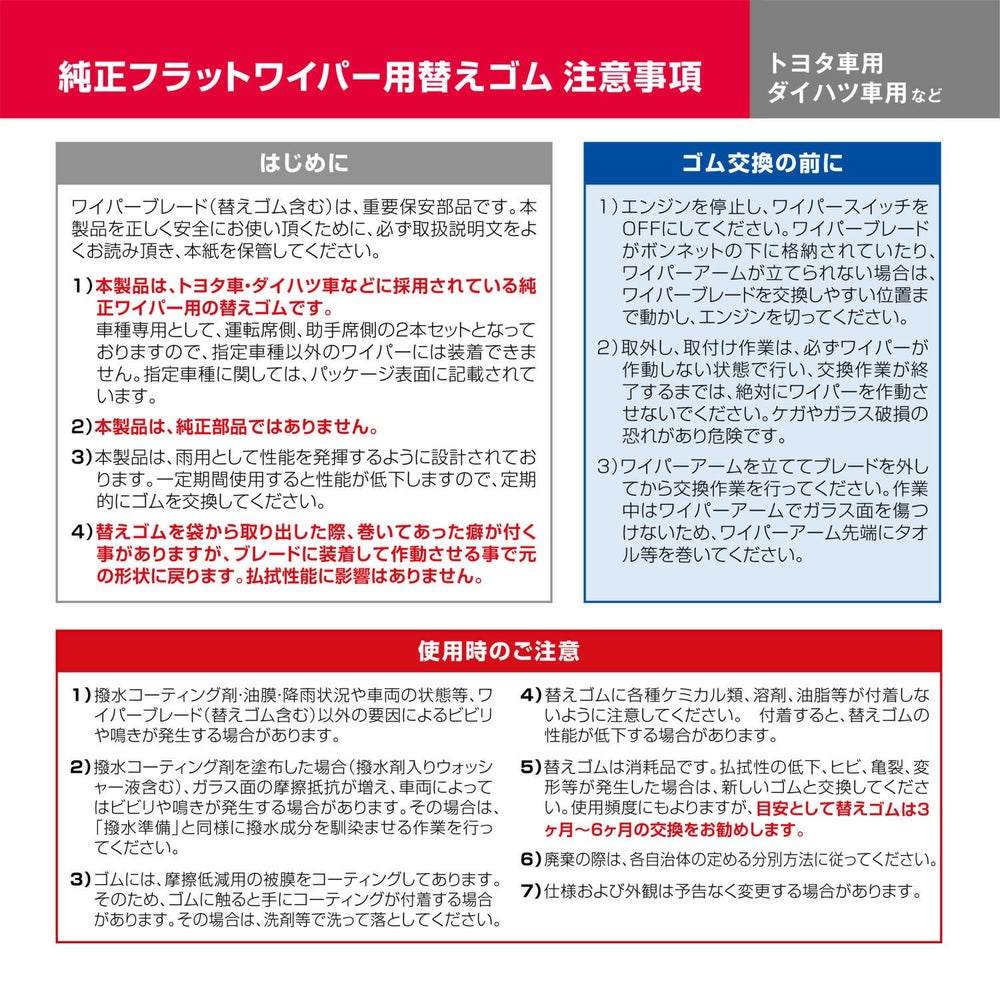 他の画像を見る 車種別専用品、更に運転席側・助手席側の2本セットなので安心です FTR6035E 純正フラットワイパー用撥水替えゴム車種別セット(ムーヴ) WEB限定品 販売価格 ¥ 2,695 税込 外窓用ウェットシート(品番:C131)の付録が便利なWEB限定品です 詳細を見る お気に入りに登録する