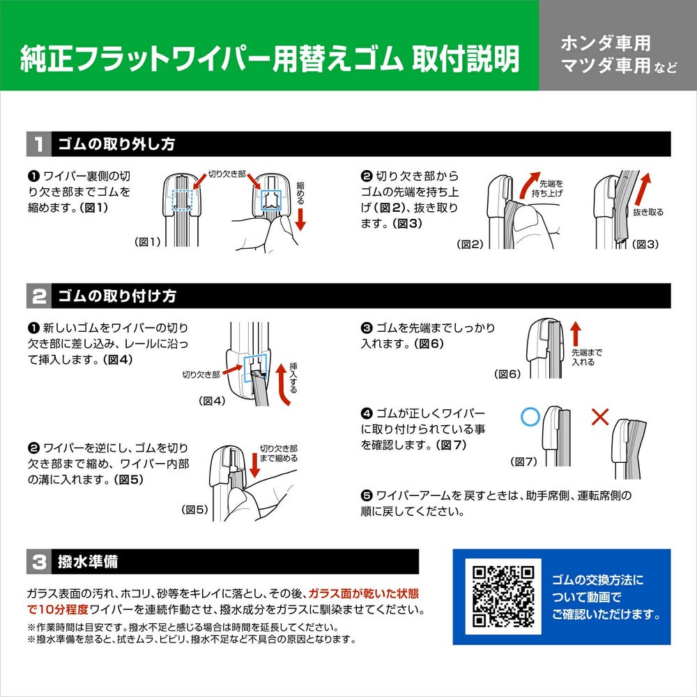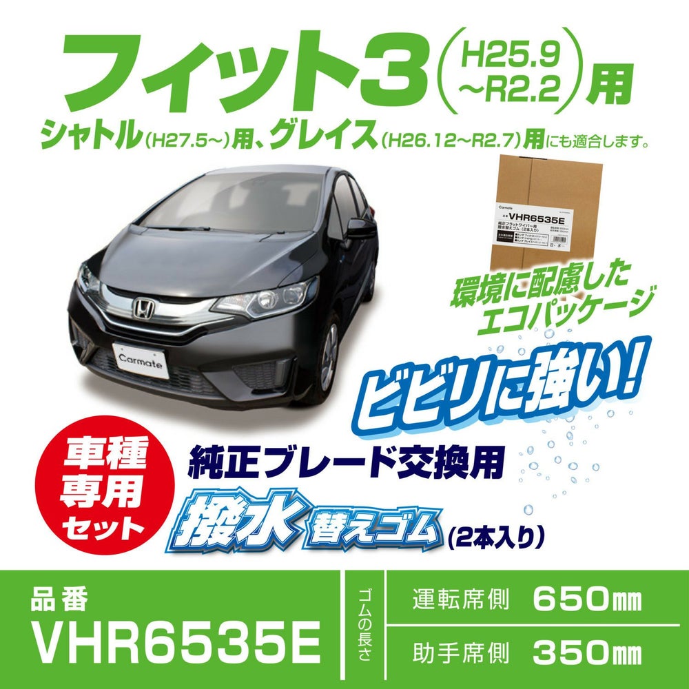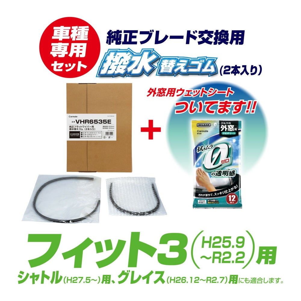 他の画像を見る 車種別専用品、更に運転席側・助手席側の2本セットなのでお求めやすいです VHR6535E 純正フラットワイパー用撥水替えゴム車種別セット(フィット3) WEB限定品 販売価格 ¥ 2,695 税込 外窓用ウェットシート(品番:C131)の付録が便利なWEB限定品です 詳細を見る お気に入りに登録する