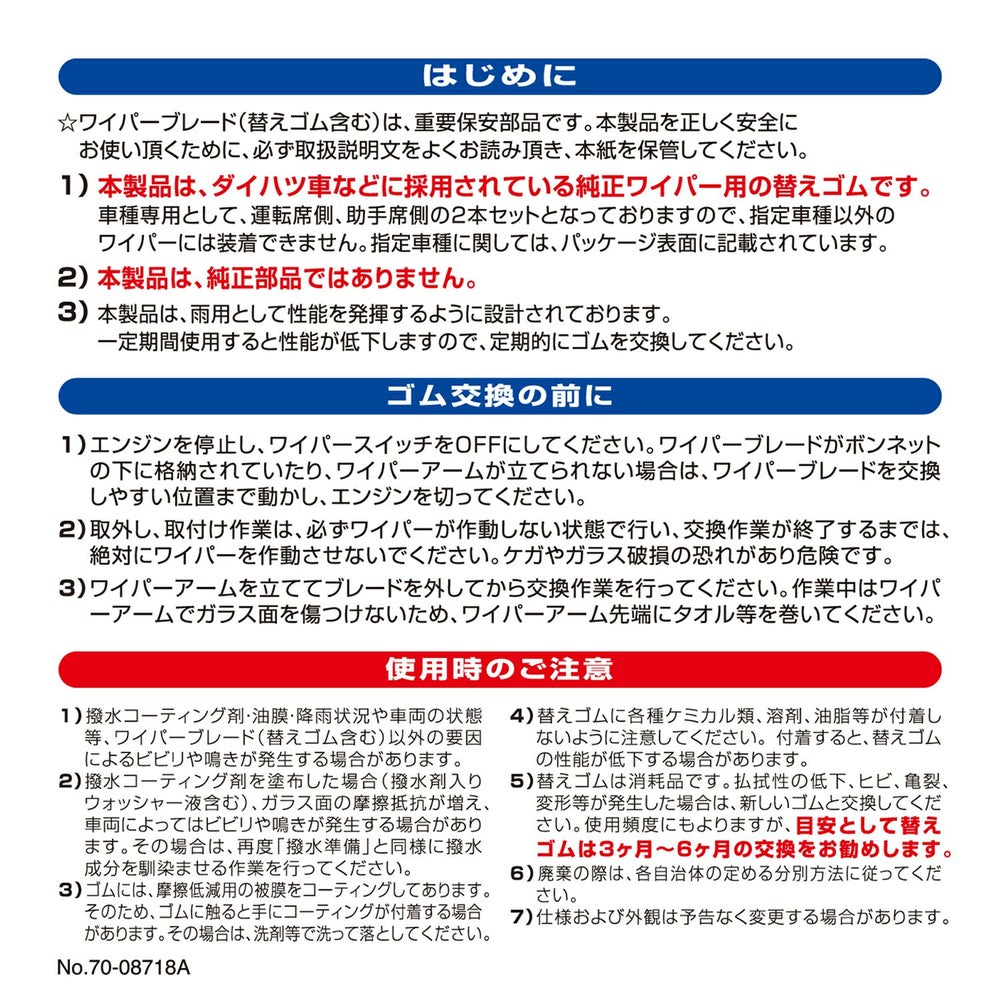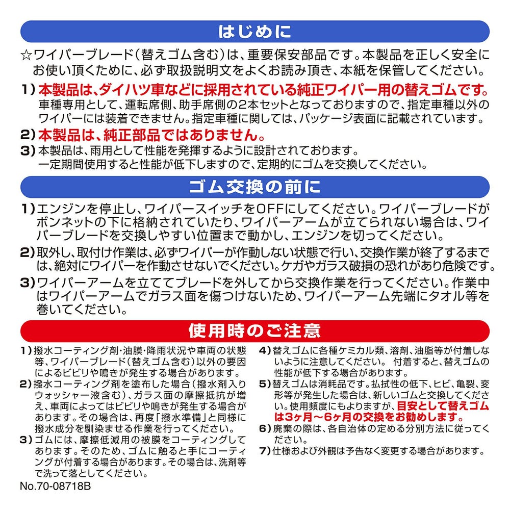 他の画像を見る 業界初!純正フラットワイパー用撥水替えゴムの車種別専用セット。 FTR6035 純正フラットワイパー用撥水替えゴム車種別セット(ムーヴ) 販売価格 ¥ 2,970 税込 業界初!純正フラットワイパー用撥水替えゴムの車種別専用セット。 詳細を見る お気に入りに登録する
