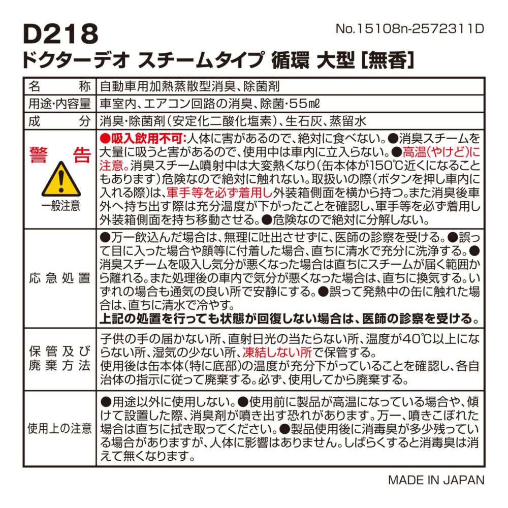 他の画像を見る ”消毒臭”が気になりにくい、メントール配合スチームが誕生!エアコン内部を強力消臭! D262 ドクターデオプレミアム スチームタイプ 循環 大型 メントール配合 販売価格 ¥ 1,430 税込 ”消毒臭”が気になりにくい、メントール配合スチームが誕生!エアコン内部を強力消臭! 詳細を見る お気に入りに登録する