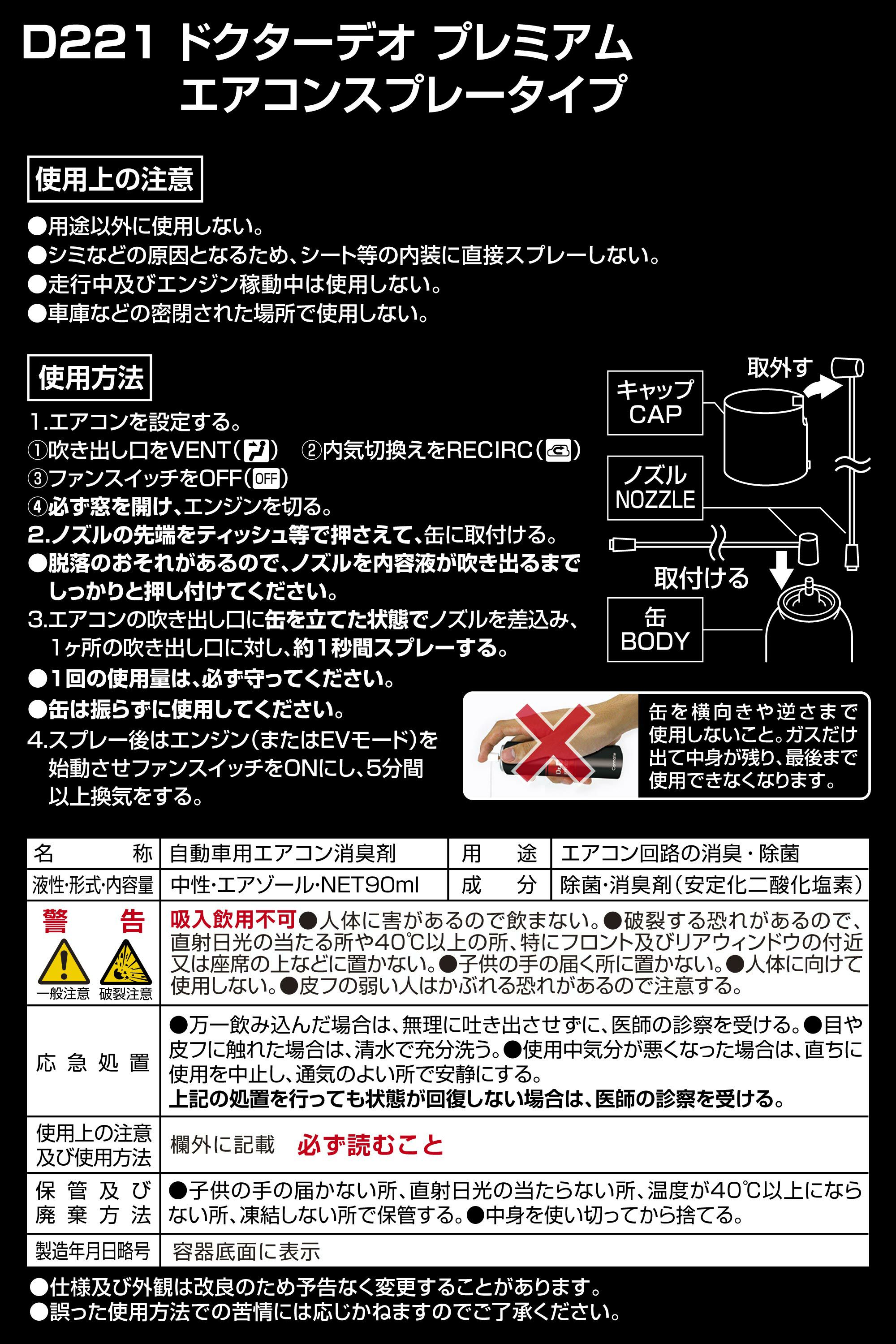 他の画像を見る ”消毒臭”が気になりにくい、メントール配合スチームが誕生!エアコン内部を強力消臭! D261 ドクターデオプレミアム スチームタイプ 循環 メントール配合 販売価格 ¥ 1,210 税込 ”消毒臭”が気になりにくい、メントール配合スチームが誕生!エアコン内部を強力消臭! 詳細を見る お気に入りに登録する
